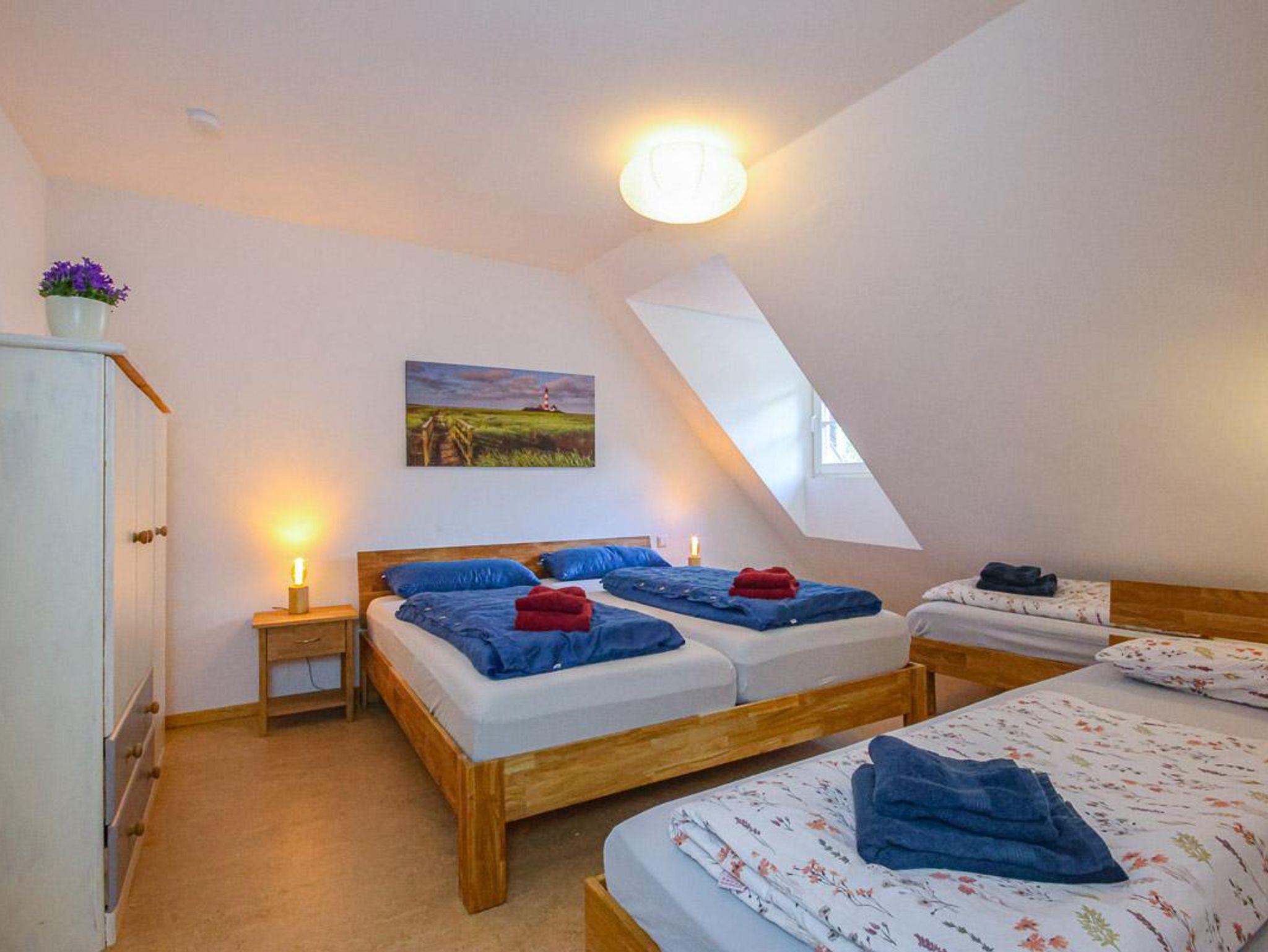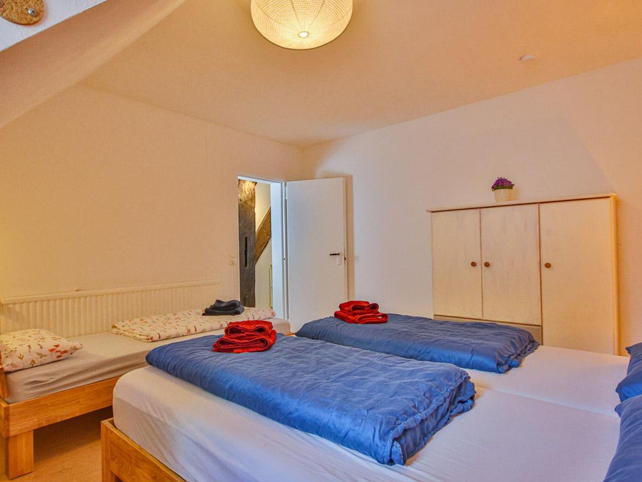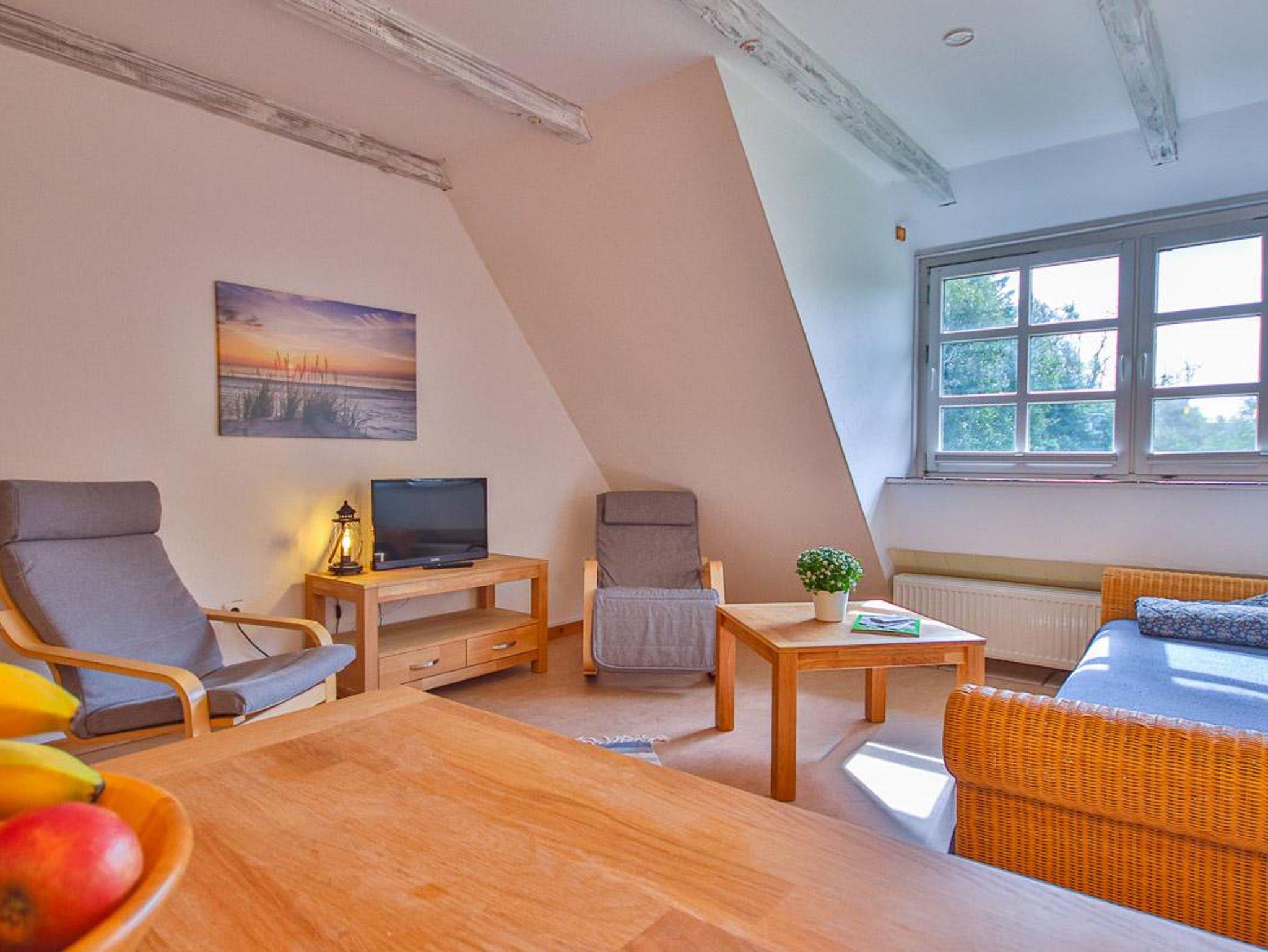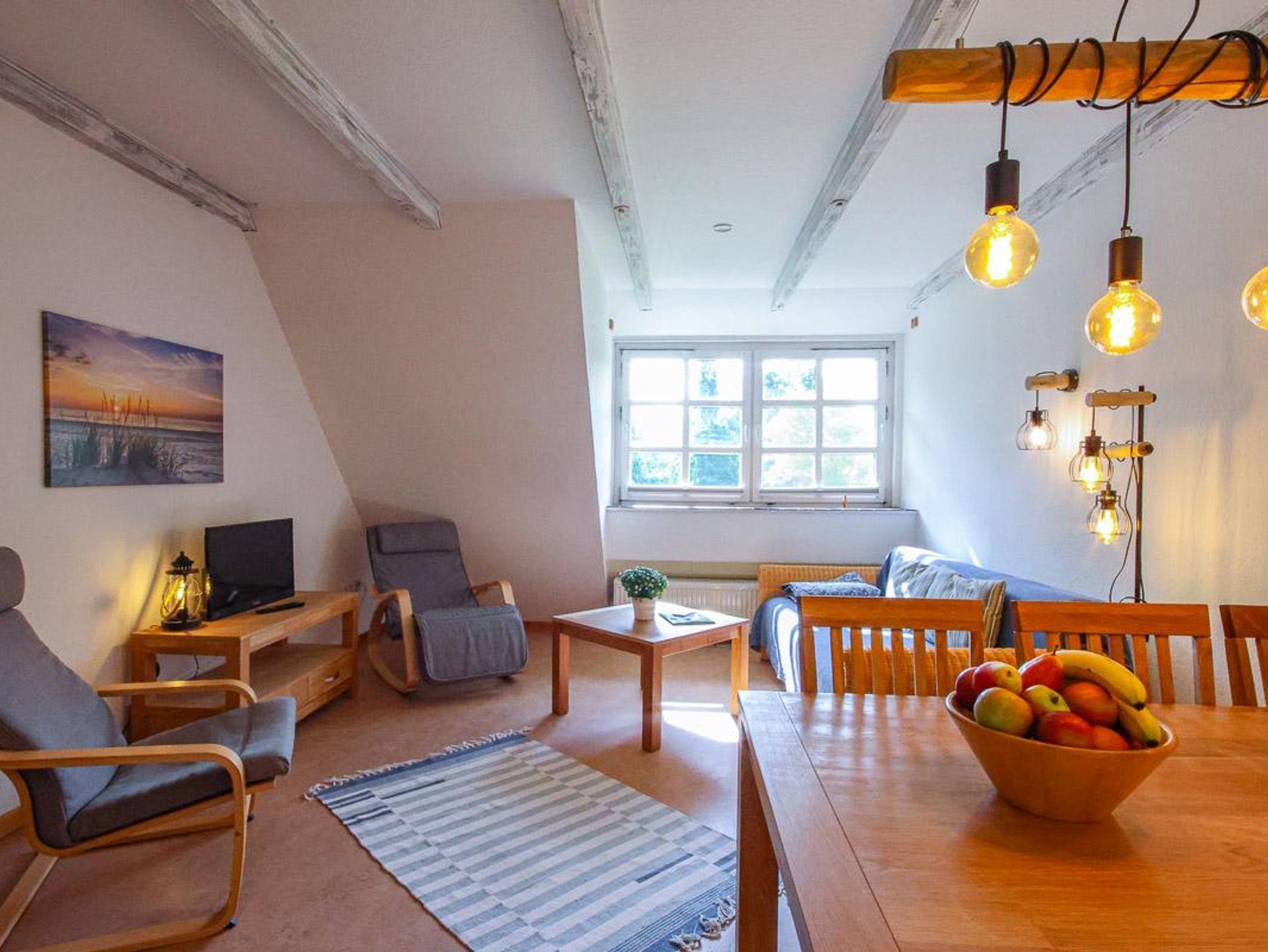 Wohnung im 1. Obergeschoss mit ca. 54 m² und Gartenblick. Geeignet für 4 Personen. Hunde sind in dieser Wohnung nicht erlaubt. Die Nichtraucher-Ferienwohnung ist ausgestattet mit SAT-TV, W-LAN auf Wunsch, Küchenzeile mit 4-Platten-Herd und Backofen, Geschirrspüler, Kühlschrank mit Gefrierfach, Kaffeemaschine, Toaster und Wasserkocher. Badezimmer mit Dusche, WC und Waschbecken. Im separaten Schlafzimmer befinden sich ein Doppelbett. Im Wohnraum kann die Couch zusätzlich als Schlafmöglichkeit verwendet werden. Kinderbett und Hochstuhl sind vorhanden.