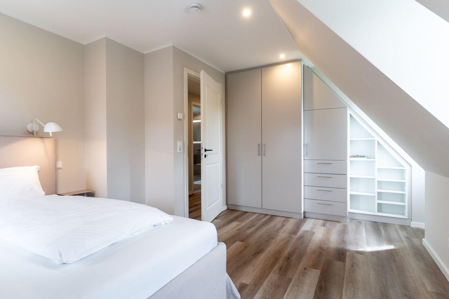 Das gesamte Haus ist mit Fußbodenheizung ausgestattet, und in den Schlafzimmern sorgen Verdunklungsmöglichkeiten für optimale Erholung.