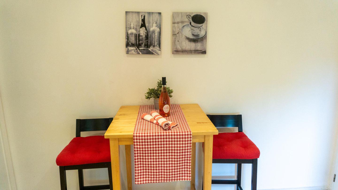 Der offene Wohnbereich, der sich harmonisch zur voll ausgestatteten Küche anschließt, lädt sowohl zum Kochen als auch zum Entspannen ein. Hier finden Sie alle Annehmlichkeiten, die eine gemütliche Auszeit benötigen: ein Kochfeld mit 2 Platten, Kühlschrank, Toaster, Mikrowelle, Kaffeemaschine und Wasserkocher. Zudem ist die Küche mit ausreichend Küchenutensilien ausgestattet. Abgerundet wird das ganze mit einem Hochtisch für gesellige Mahlzeiten.