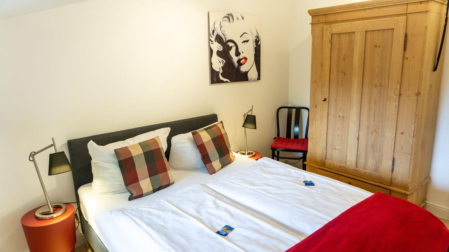 Der Schlafbereich ist hell und freundlich gestaltet.
