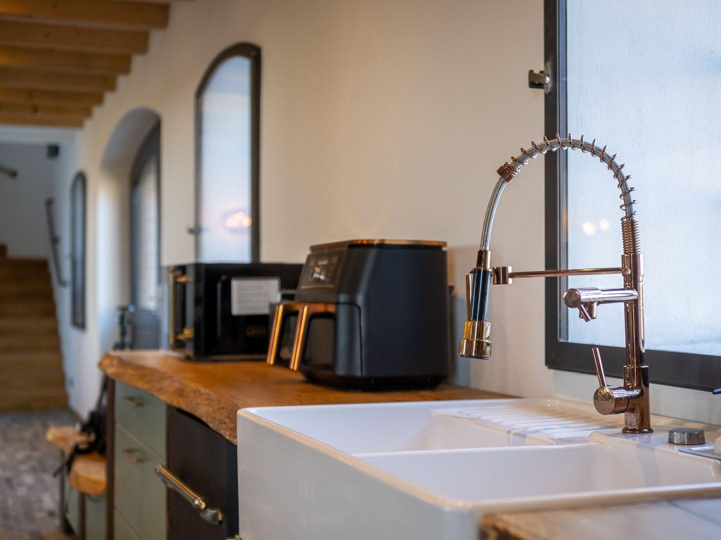 In der Küche finden Sie eine umfangreiche Ausstattung für den Alltag und gemeinsames Kochen: Induktionsherd, Backofen, Mikrowelle, Kühlschrank, ein extra Gefrierschrank, Spülmaschine sowie Wasserkocher und Toaster. Für Kaffeeliebhaber steht eine Espressomaschine in Form eines Siebträgers zur Verfügung. Auch ein Soda Stream ist vorhanden. Als besonderer Akzent sorgt ein Flipper für Unterhaltung im Haus.