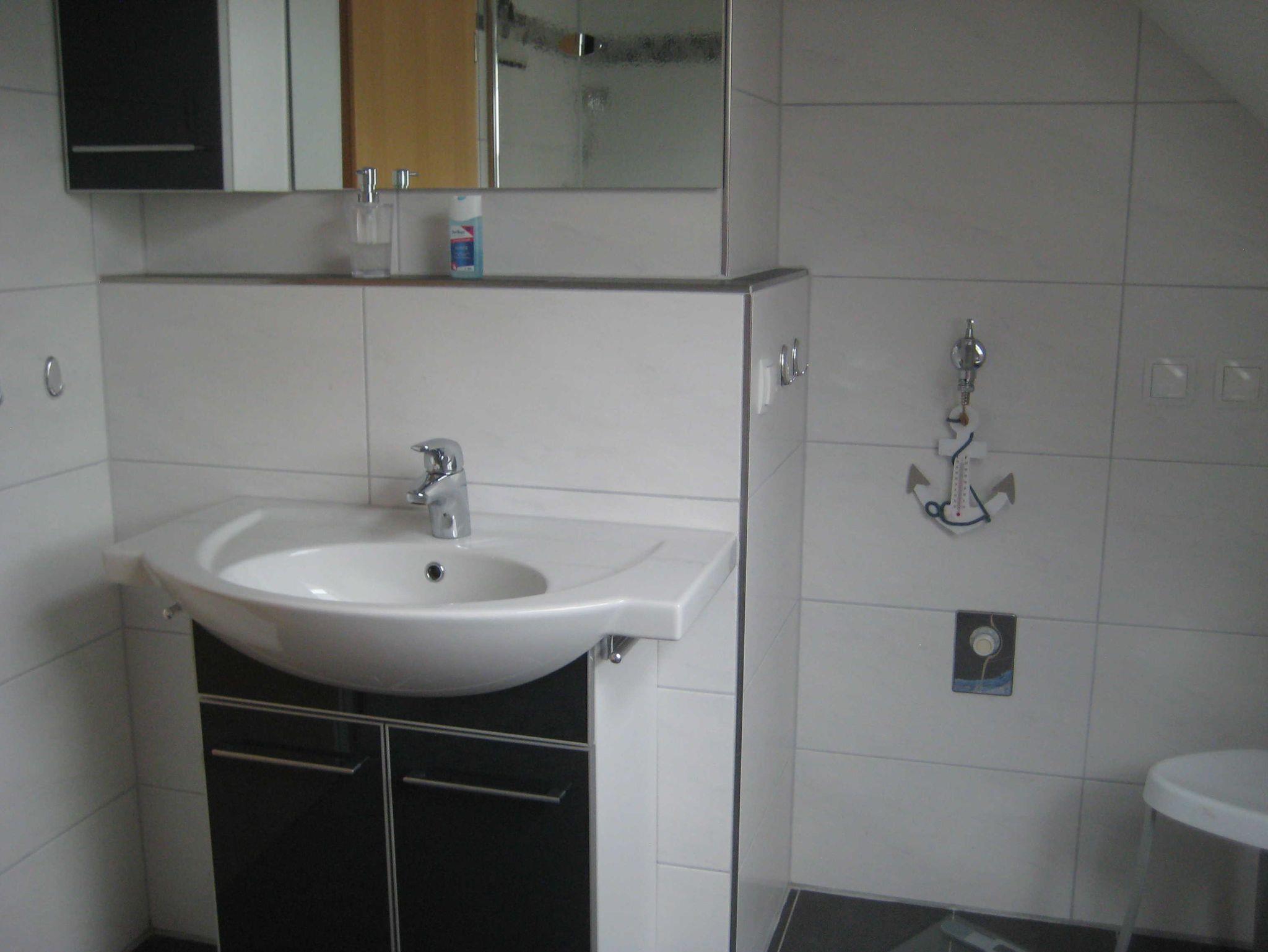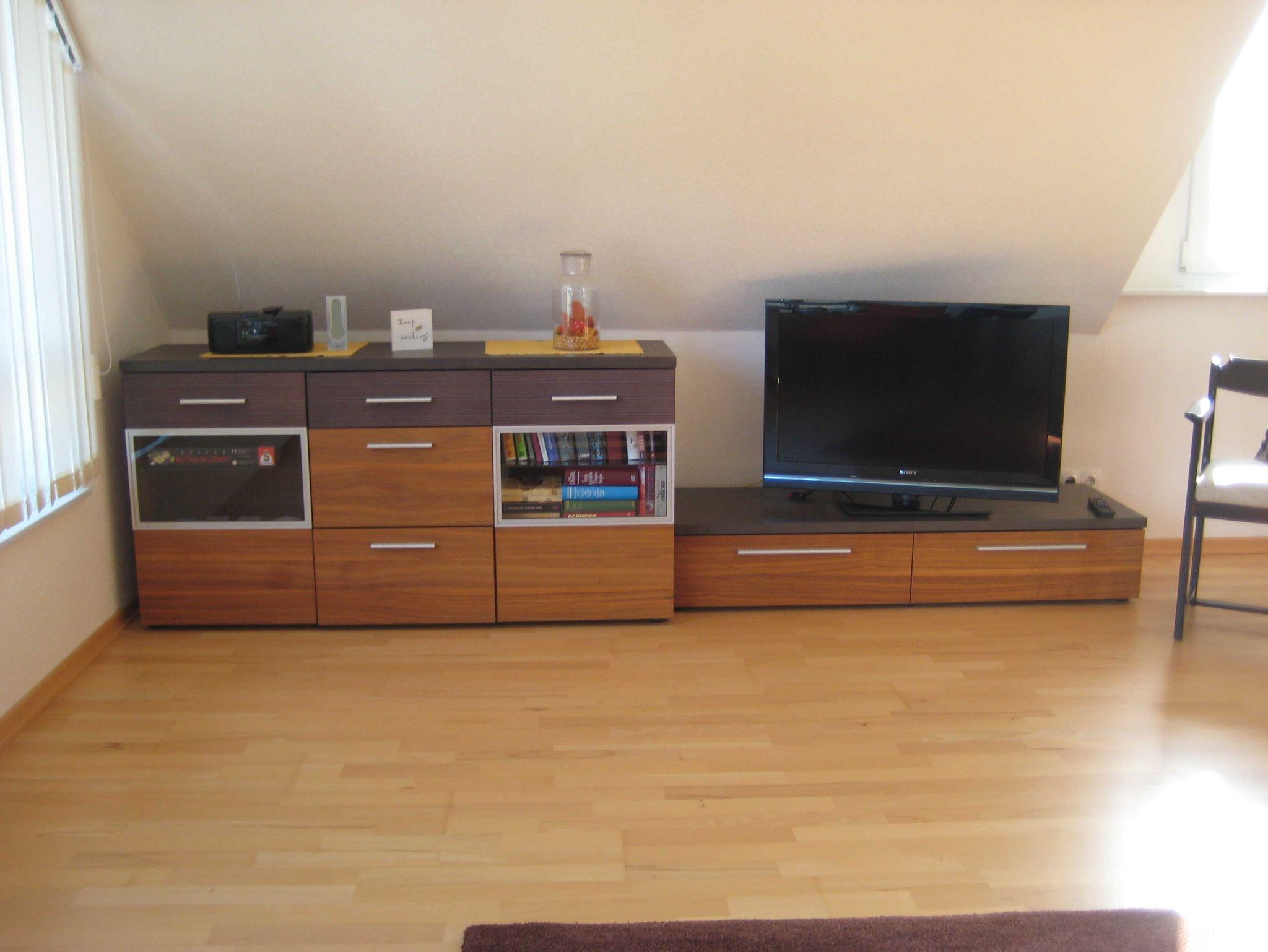 Helle Nichtraucher-Ferienwohnung mit großen Fenstern und guter Aussicht im 1. Stock des Zweifamilienhauses. Geräumiges Wohnzimmer mit Essecke, 1 Schlafzimmer mit großem Schrank und Doppelbett 2 x 2 m, gute Matratzen, 1 kleiner Schlafraum mit Kommode und französischem Bett 1,40 x 2 m, Einbauküche mit Essplatz und angrenzendem großen Balkon. Dusche/WC (Handbrause und Regendusche). Diele mit Garderobe.