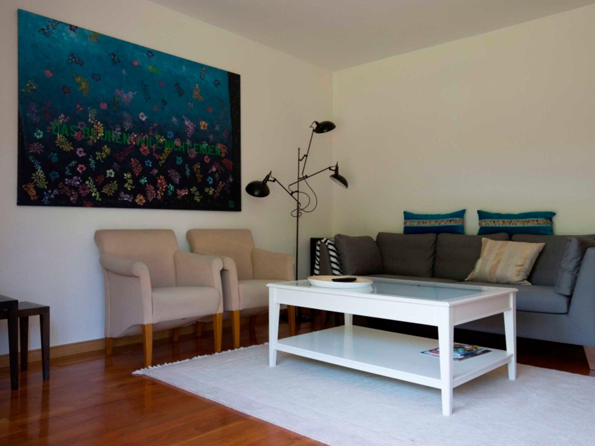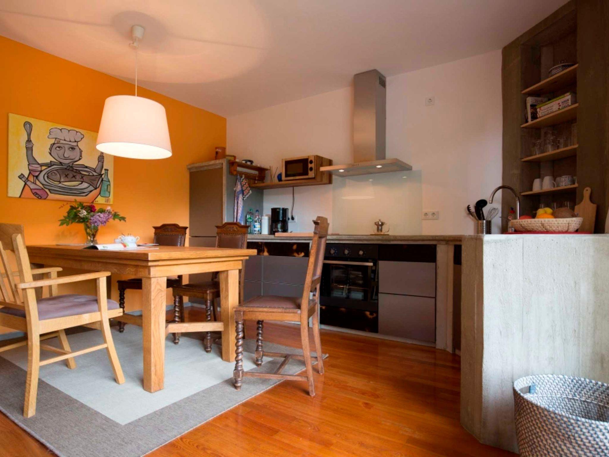hochwertige Ausstattung, 2 Schlafräume (Doppelbett 180 x 220 cm, 2 Einzelbetten 90 x 200 cm) Bettwäsche vorhanden, Fußboden Massivholzparkett, 1 Wohnküche mit Beton-Einbauküche, Induktionsherd, Backofen, Mikrowelle, Kühlschrank mit Eisfach, Minibar, 1 Wohnzimmer mit Schlafsofa, Bibliothek, SAT-TV und W-LAN frei, 1 Bad mit Dusche/ WC und Fußbodenheizung, 1 Gäste-WC. Wohnzimmer und Küche sind über das Sonnendeck miteinander verbunden.