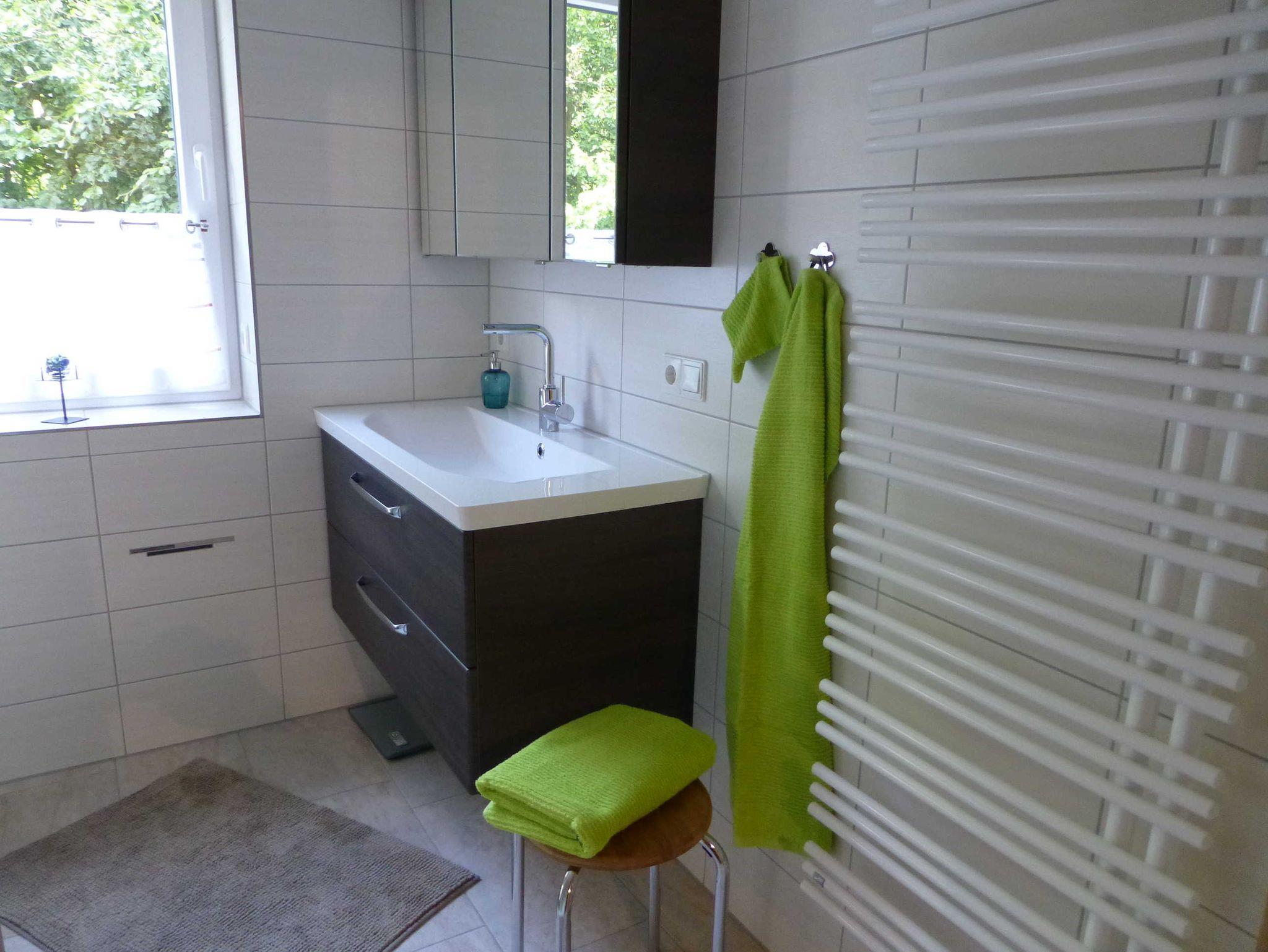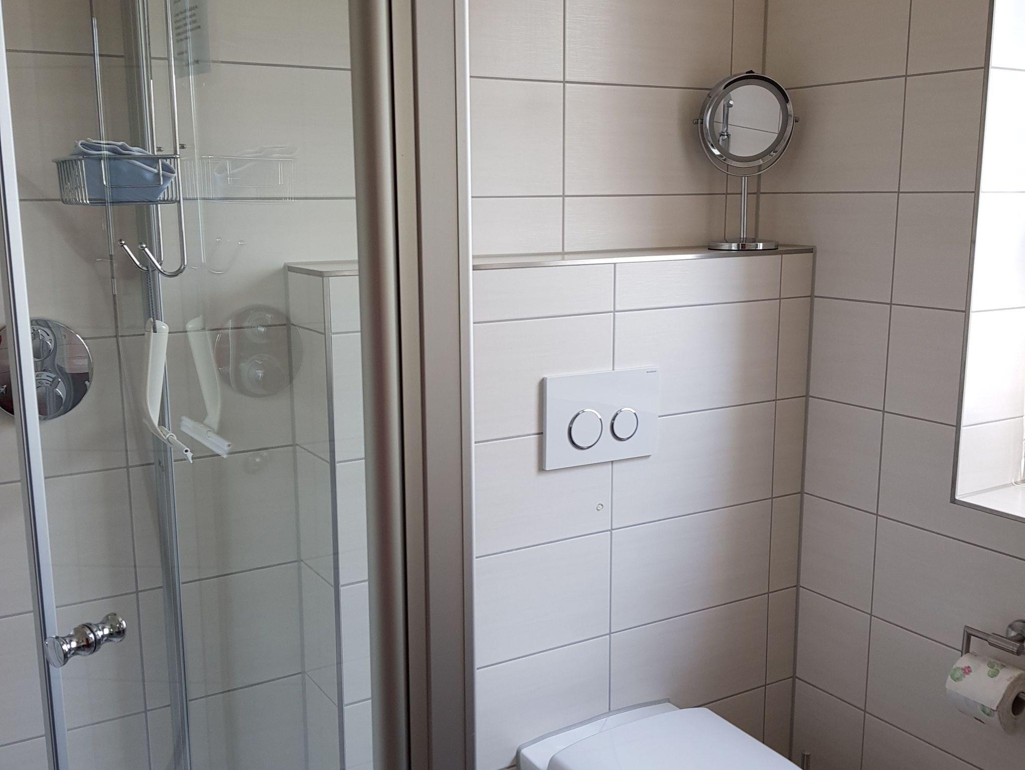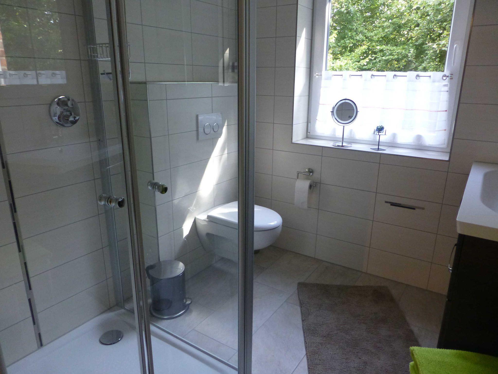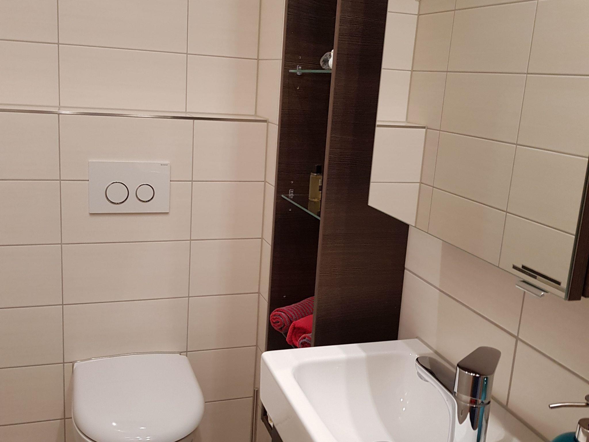 Im modern ausgestatteten Badezimmer mit ebenerdiger Wellnessdusche, WC und großzügigem Waschtisch werden Sie sich schon morgens wohlfühlen, ein separates Gäste WC ist ebenfalls vorhanden.