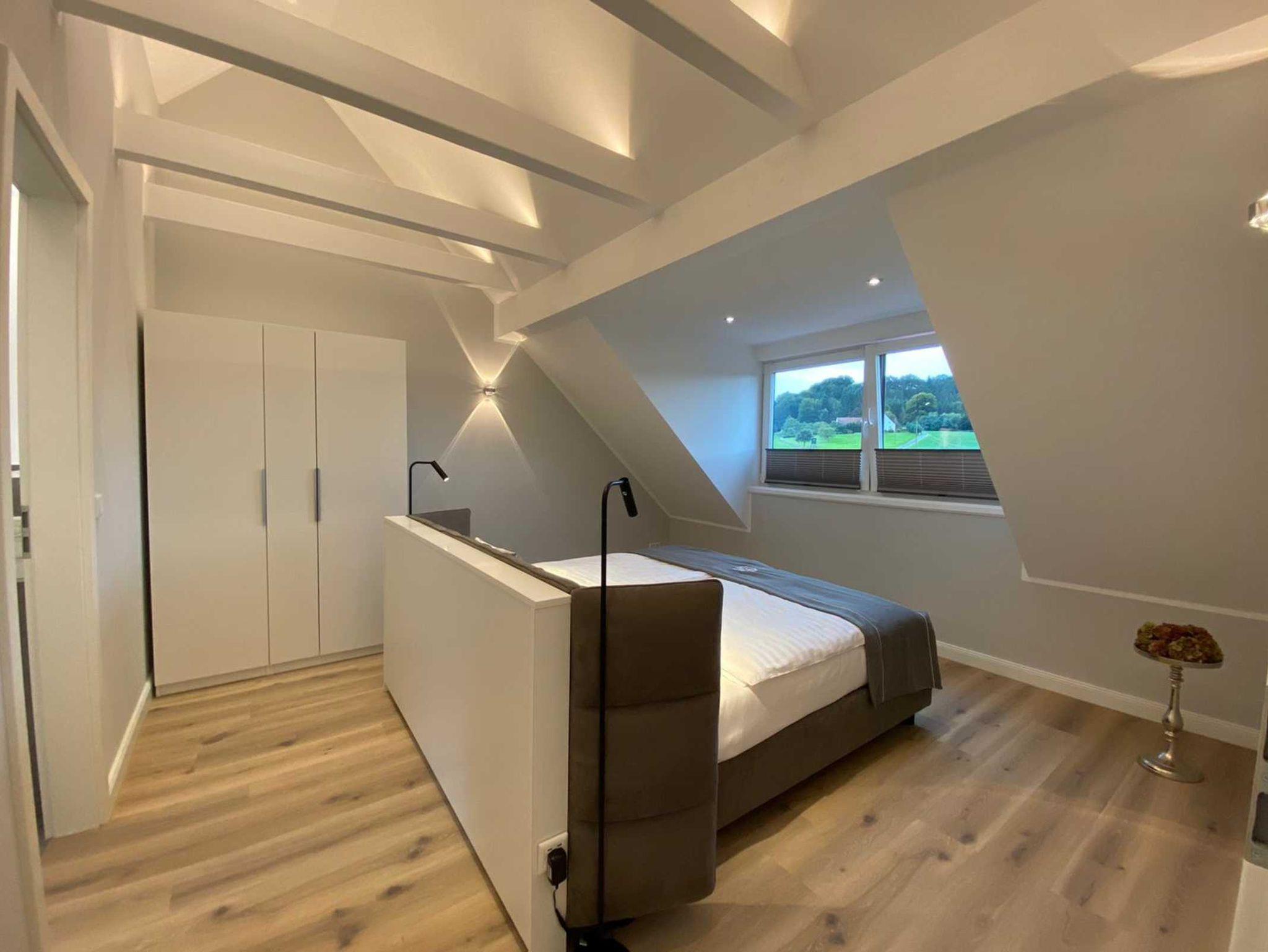 Das Panorama-Apartment überzeugt durch seine Großzügigkeit und einen sensationellen Blick aus dem Obergeschoss über die Ländereien.
