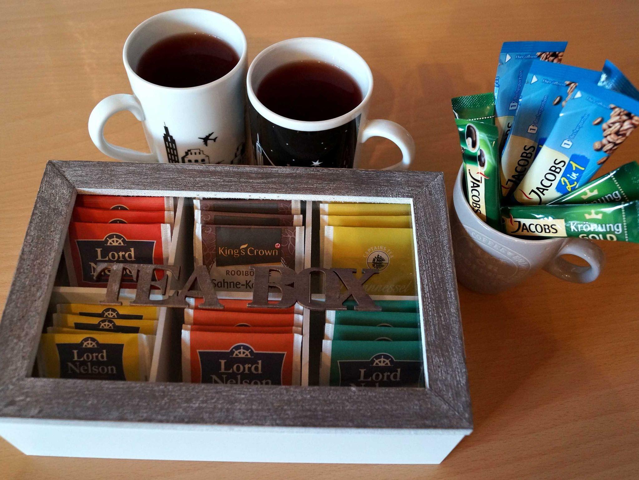 Wir heißen Sie gerne mit einer Tasse Kaffee oder Tee willkommen, beides finden Sie im Apartment vor. Ebenso sind die Betten bei Ihrer Ankunft bereits frisch bezogen.