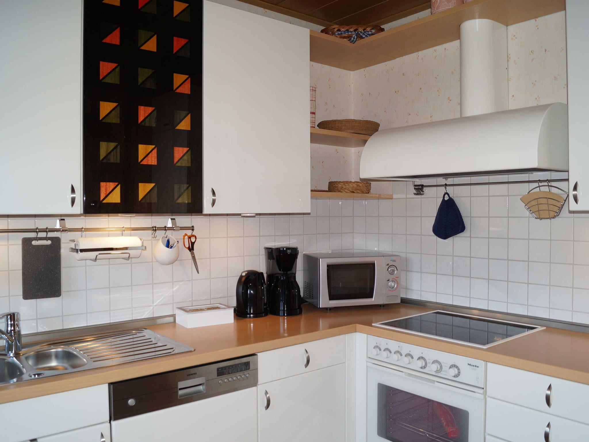Das Apartment verfügt über eine gehobene Ausstattung, zum Beispiel ist die Küche u. a. mit Backofen, Ceranfeld, Geschirrspüler sowie Kühl- und Gefrierschrank sehr umfangreich eingerichtet. Weiterhin sind alle Fenster mit elektrisch betriebenen Rollläden versehen, die Fußböden sind hochwertig gefliest oder bestehen aus Echtholz- oder Korkparkett.