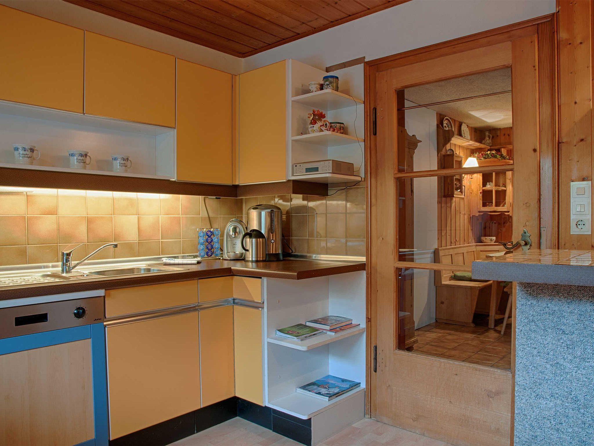 Geräumiges Wohnzimmer mit bequemem Sessel, großes Sofa, Schrankwand mit LED-Flachbild-TV, Büchern und Magazinen. Komplett eingerichtete Küche mit Küchenbar, Geschirrspüler, Kühlschrank mit Gefrierfach, Herd mit Backrohr, Ceran-Kochfeld, Dunstabzug, Kaffeemaschine, Espresso-Maschine, Wasserkocher und Toaster. Gemütliche Stub'n mit Kaminofen und Essecke, separates Schlafzimmer mit Doppelbett, geräumigem Kleiderschrank, Bad mit Wanne, Dusche, Waschbecken und WC.
