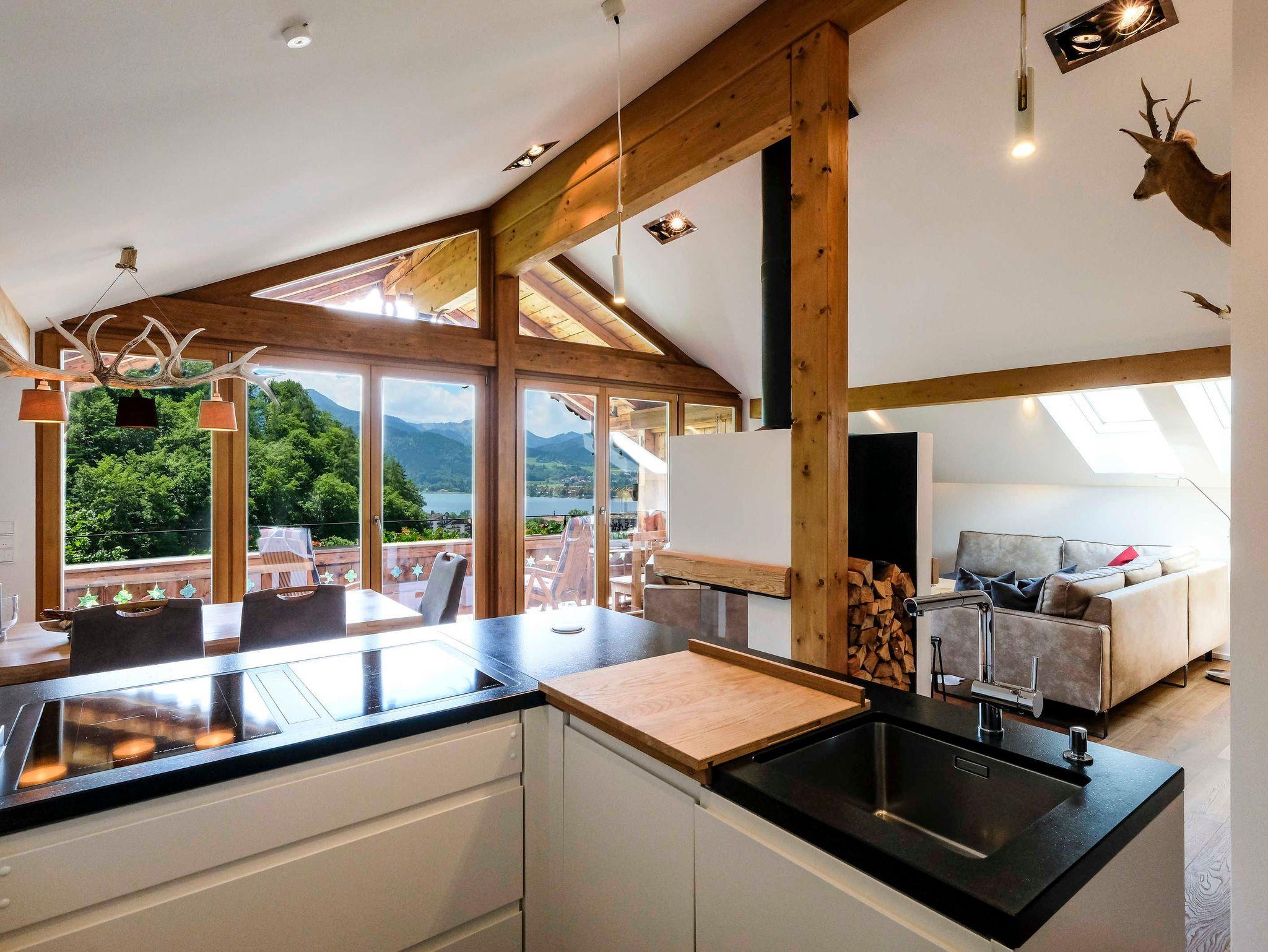 Das Alpbach ist ein stilvolles Tegernseer Landhaus, das drei aufwändig renovierte Design-Suiten mit fantastischem Blick über den Tegernsee und die Bergwelt bietet. Liebevoll und hochwertig ausgestattet in herrlich ruhiger, sonniger, zentraler Lage lädt Das Alpbach mit Kamin, Garten, Balkon und weiteren Besonderheiten zum Wohlfühlen ein. Genießen Sie im Sommer ausgiebige Grill-Abende im hauseigenen Garten oder im Winter die herrliche Wärme der Außensauna mit Blick über den Tegernsee.