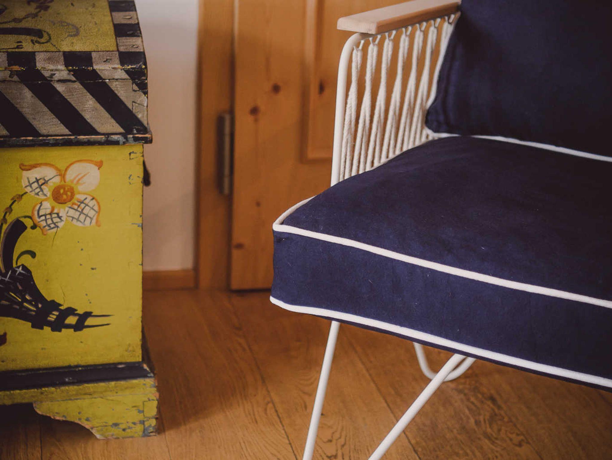 Neben einem Doppelbett (1,80m x 2m) ist der Raum mit einem Esstisch, 2 Stühlen, einem Kleider- und Wäscheschrank und 2 Sesseln möbliert. Das Bad ist mit einer Badewanne ausgestattet.