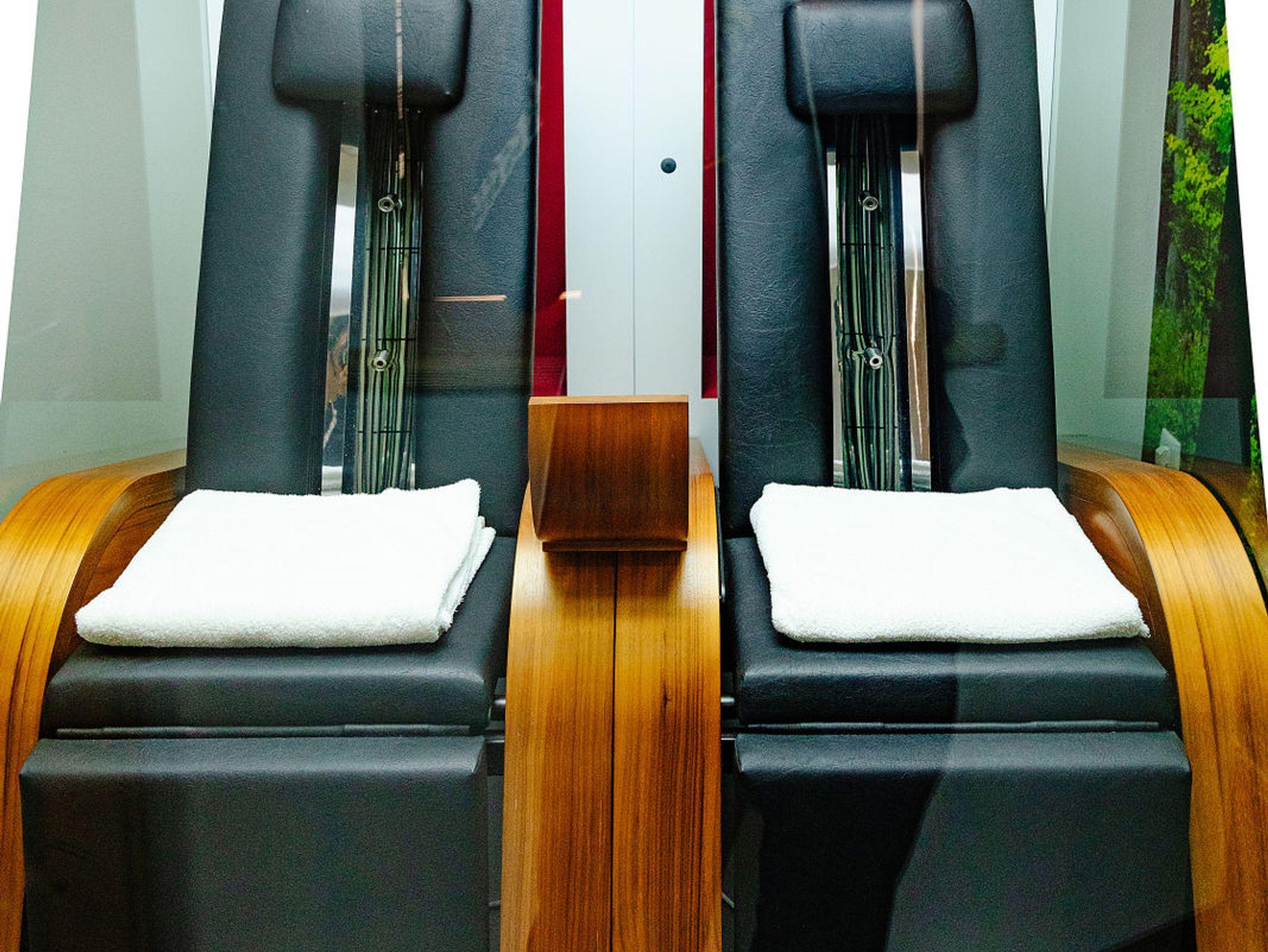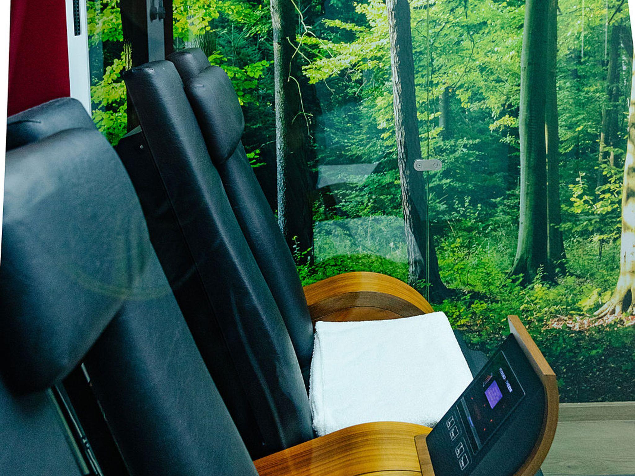 Das Highlight ist der private Wellnessbereich mit einer modernen Infrarotkabine für zwei Personen – perfekt für romantische Stunden zu zweit oder eine kleine Auszeit nach einem aktiven Tag. Sanfte Wärme, angenehmes Licht und bequeme Liegestühle schaffen hier eine Wellnessoase direkt in der Ferienwohnung.