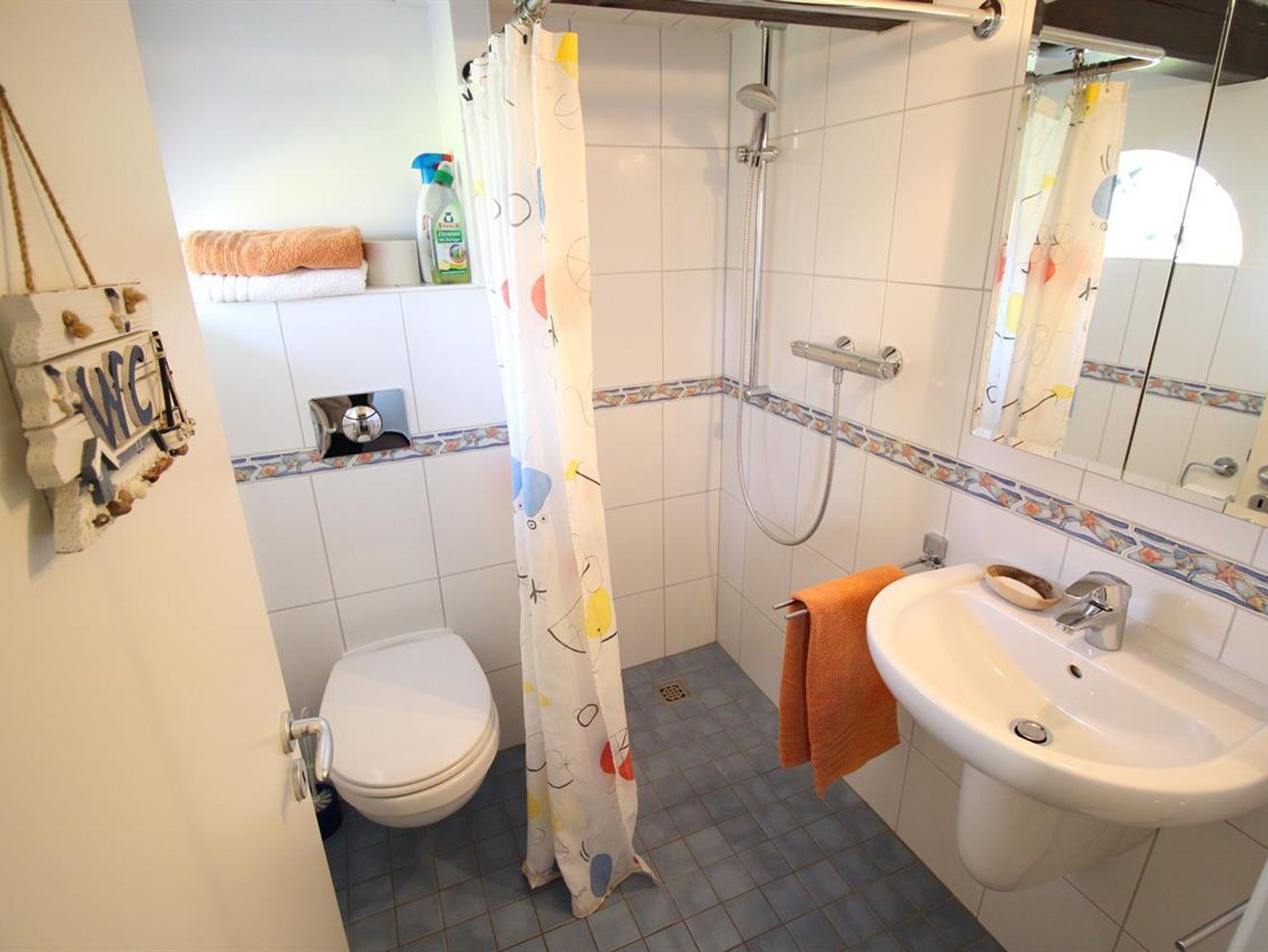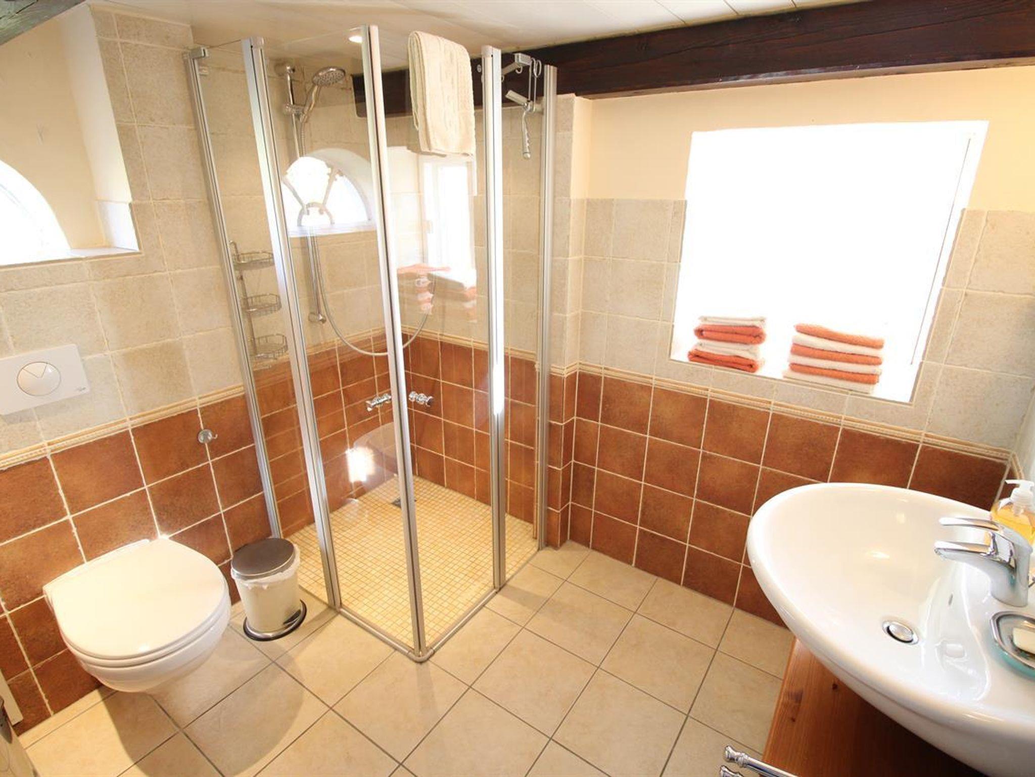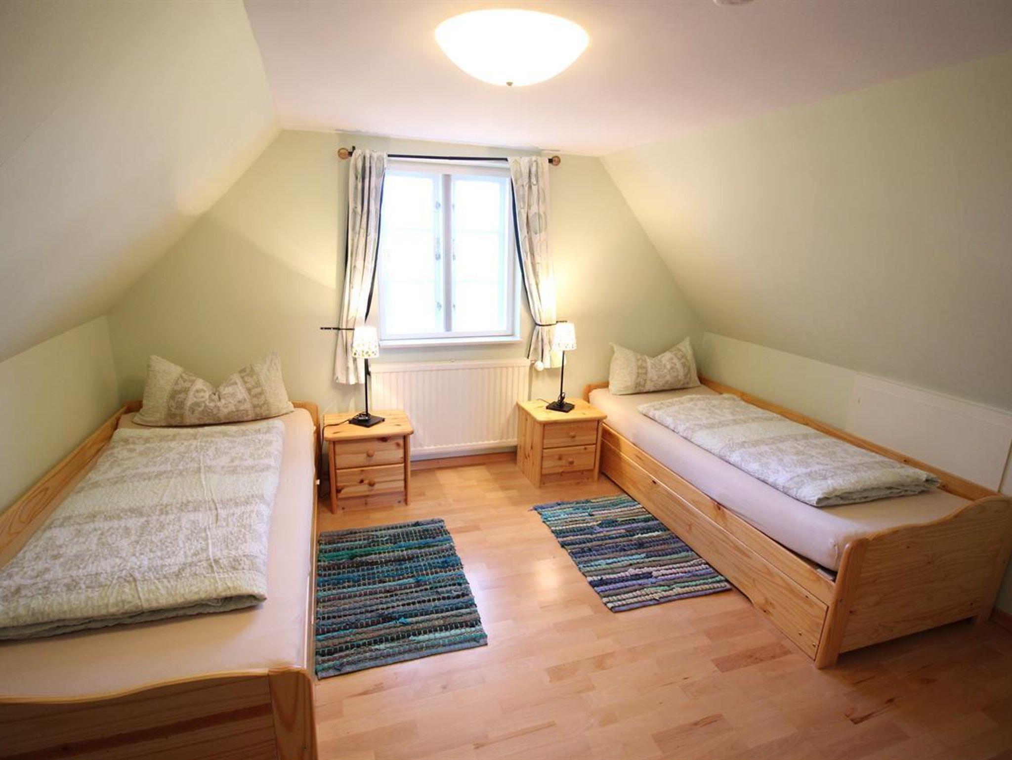 Im Wohnraum mit gemütlicher Sitzecke stehen auch ein Fernseher, DVD-Player und eine Stereoanlage mit Ipod/Iphone-anschluss.Die Küche ist komplett mit Geschirrspüler, Waschmaschine, Trockner, Mikrowelle, Saftpresse sowie einem Backofen und Gefrierschrank ausgestattet. Durch einen direkten Zugang durch die Küche, gelangt man in das gemütliche Esszimmer. Im Erdgeschoss stehen 2 Bäder zur Verfügung, die jeweils mit WC und Dusche ausgestattet sind.Im Obergeschoss befindet sich ein Schlafraum mit 2 Betten, jene über 2 weitere ausziehbare Betten verfügen. Wlan vorhanden.