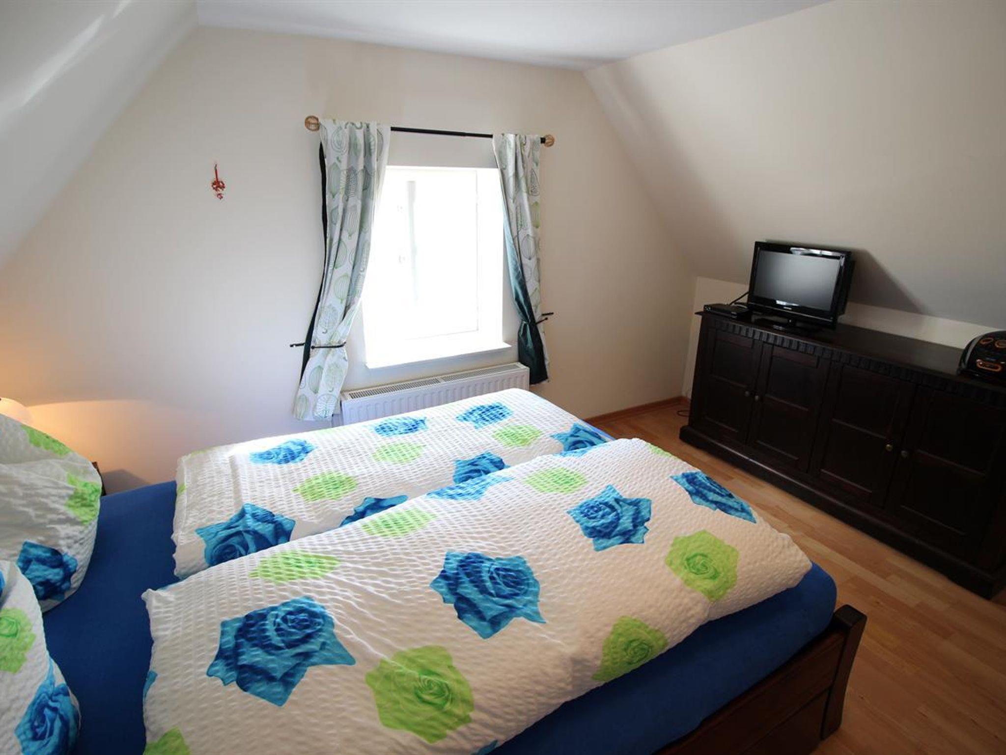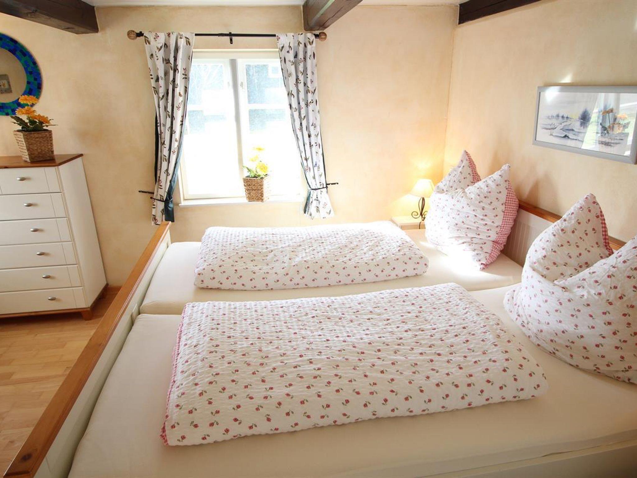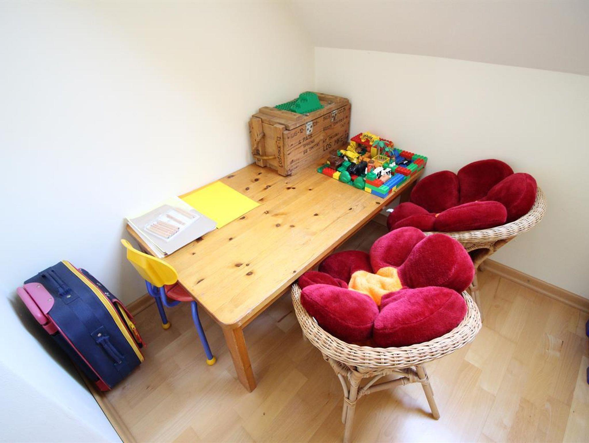 Im Wohnraum mit gemütlicher Sitzecke stehen auch ein Fernseher, DVD-Player und eine Stereoanlage mit Ipod/Iphone-anschluss.Die Küche ist komplett mit Geschirrspüler, Waschmaschine, Trockner, Mikrowelle, Saftpresse sowie einem Backofen und Gefrierschrank ausgestattet. Durch einen direkten Zugang durch die Küche, gelangt man in das gemütliche Esszimmer. Im Erdgeschoss stehen 2 Bäder zur Verfügung, die jeweils mit WC und Dusche ausgestattet sind.Im Obergeschoss befindet sich ein Schlafraum mit 2 Betten, jene über 2 weitere ausziehbare Betten verfügen. Wlan vorhanden.