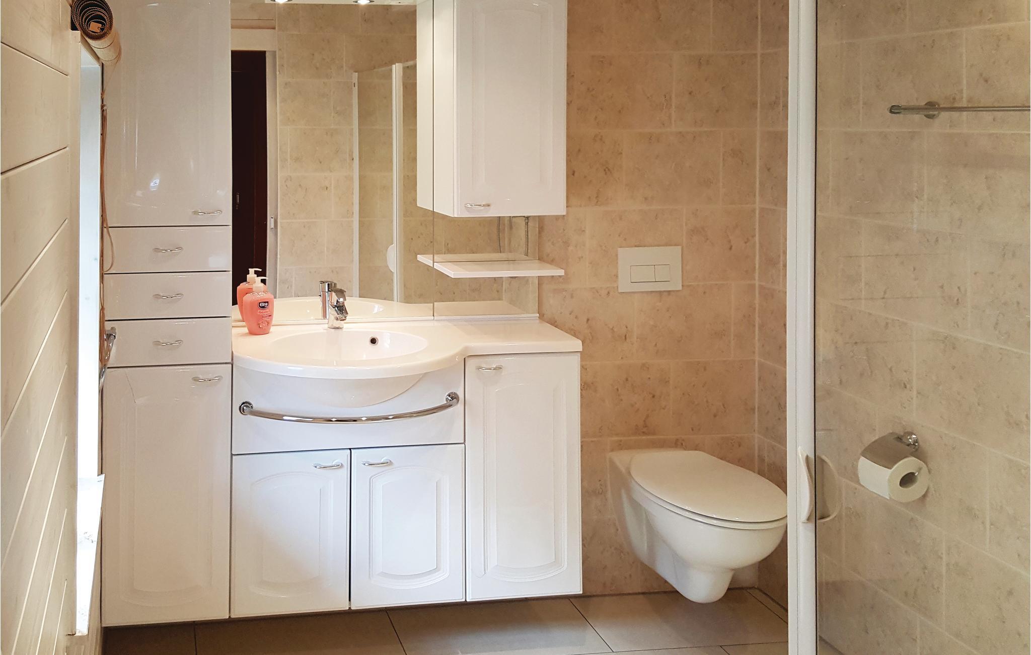 - WC med varmt og kaldt vann, Dusj