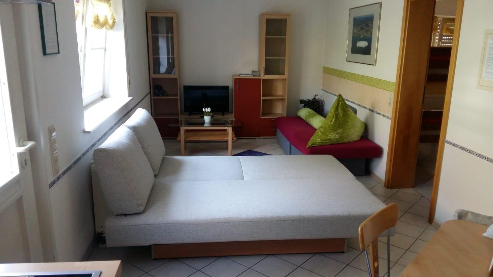 Die Ferienwohnung APFELLIEBE ist eine sehr schöne, neu renovierte Einliegerwohnung mit Außensitzgelegenheit, einem Schlafzimmer, Küche und Wohnzimmer. Sie ist ausgestattet mit einem separaten Schlafzimmer mit Doppelbett und Einzelbett . Im Wohnzimmer befindet sich eine Schlafcouch und ein Schlafsessel für weitere 1 bis 3 Personen. Empfohlene Maximalbelegung 4 Personen oder Familie mit 3 Kindern.