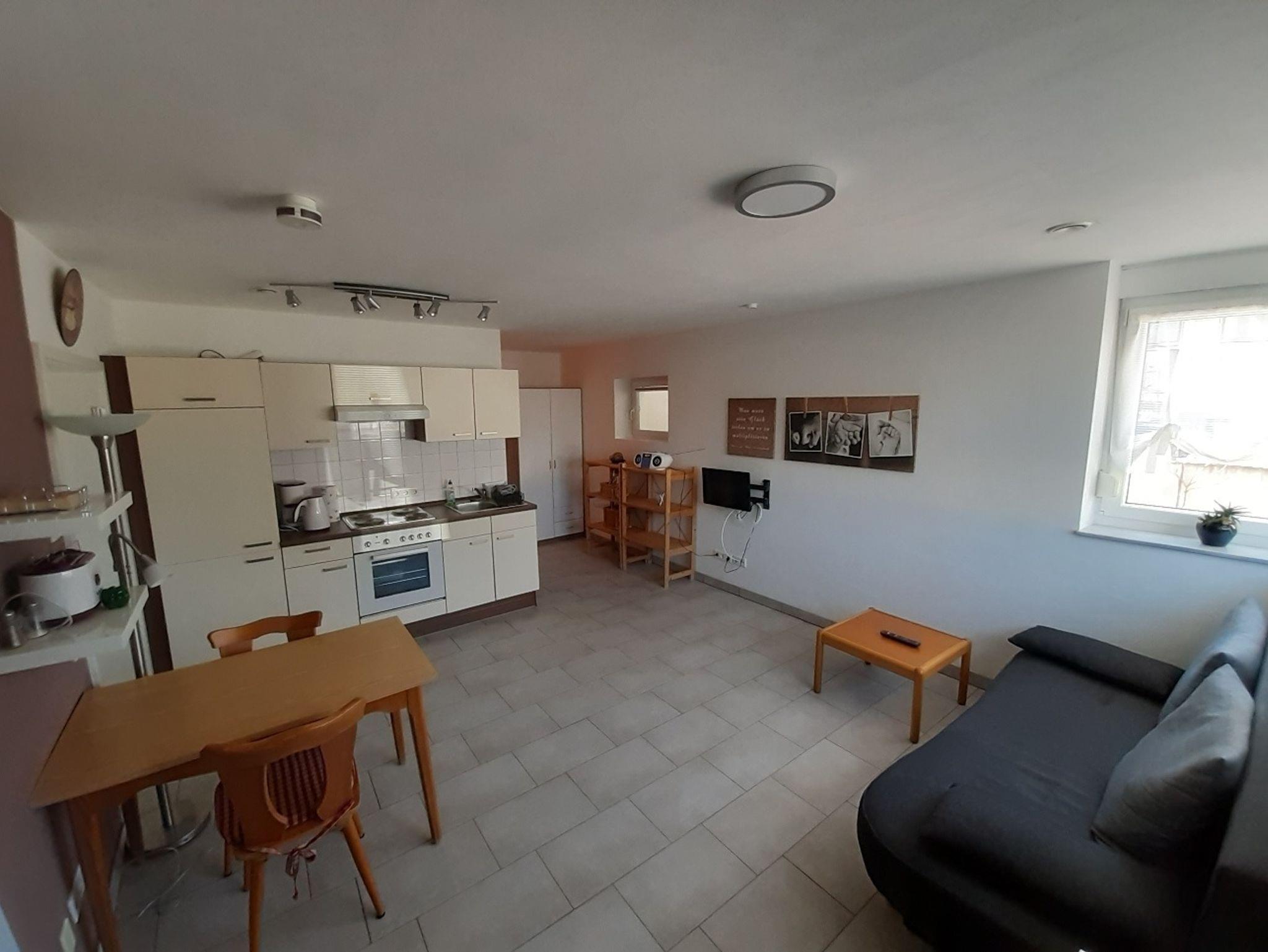 Es erwartet Sie ein behindertenfreundliches, 1,5 Zimmer Appartement mit Terrasse, getrenntem Schlafbereich (1 Doppelbett), Wohn-Essbereich (mit Schlafcouch für 2 Personen 140x185) mit Sat-TV inkl. LAN-Anschluss, kostenfreies WLAN auf Anfrage, Radio inkl. CD-Player und Klappcouch, komplett eingerichtete Küche, Bad mit WC und Dusche (inkl. Föhn),Bettwäsche/Handtücher inklusiv, Kinderbett kostenfrei, PKW-Stellplatz am Haus kostenfrei, inkl. Liegestühle für Terrasse, kinderfreundlich, Spielplatz in unmittelbarer Nähe, Nichtraucherwohnung, kostenloser Abholservice vom Bahnhof Thüngersheim/Würzburg - auch für Rollstuhlfahrer (Aktiv- und Elektrorollstuhl)