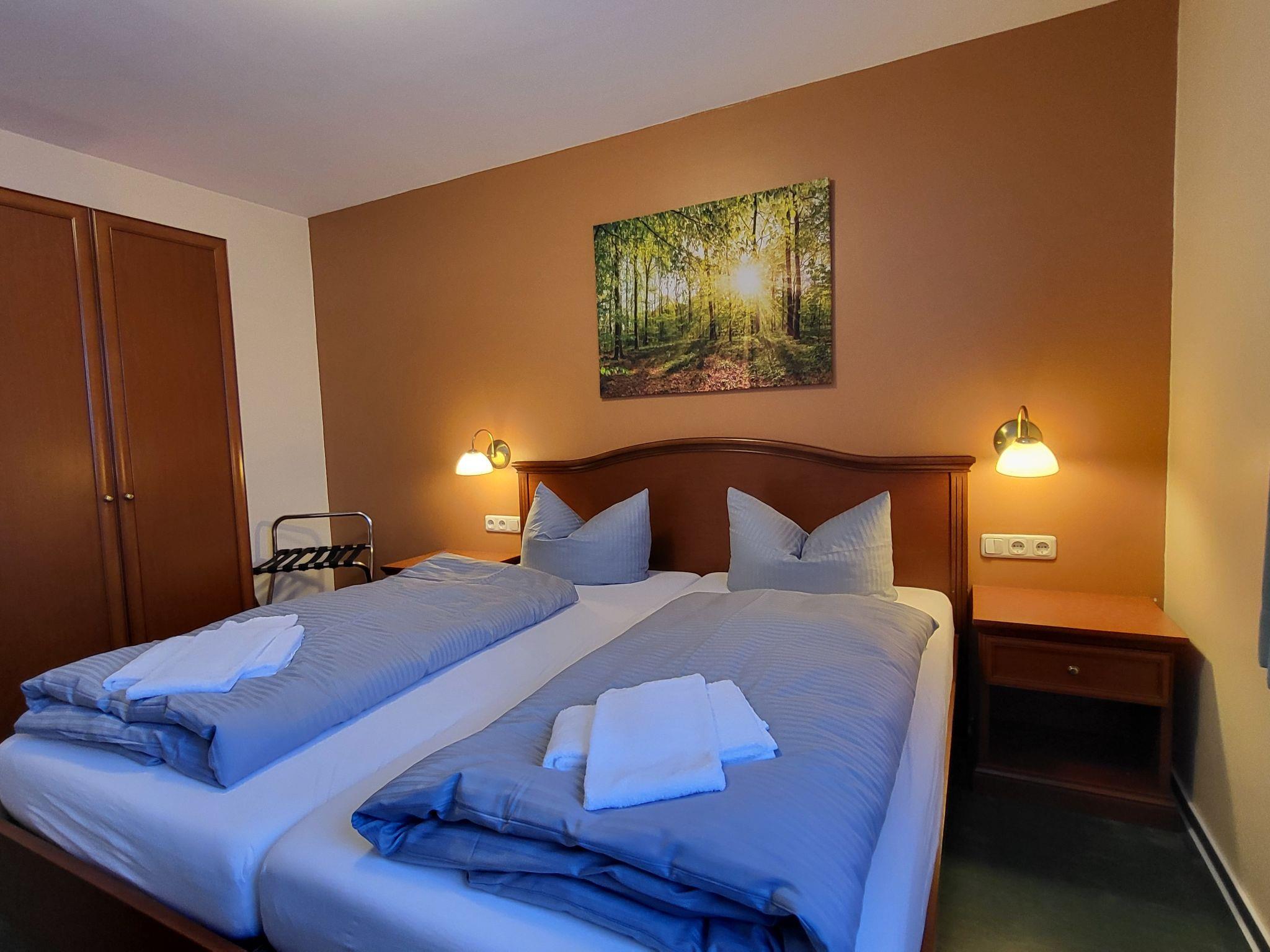 Beautiful, comfortable aparthotel "Hotelpark-Bodetal", 2 storeys. In the centre of Thale, excellent location: right in the centre but still quiet. For shared use: large, well-kept garden, meadow, lawn for sunbathing, swimming pool (seasonal availability: 01.May. - 30.Sep.). Children's pool, table tennis, barbecue, fireplace, children's playground (swing, sandbox). In the complex: reception, restaurant, WiFi. Bread roll service and breakfast. Parking on the premises. Supermarket 500 m, restaurant 50 m, bus stop "Hauptbahnhof Thale" 200 m, railway station "Hauptbahnhof Thale" 200 m, park "Friedenspark" 50 m, thermal baths "Bodetal Therme Thale" 300 m. Cable car 500 m, chair lift 2 km, children's playground 20 m. Nearby attractions: Hexentanzplatz 2 km, Roßtrappe 2 km. Well-known ski regions can easily be reached: Roßtrappe 2 km.