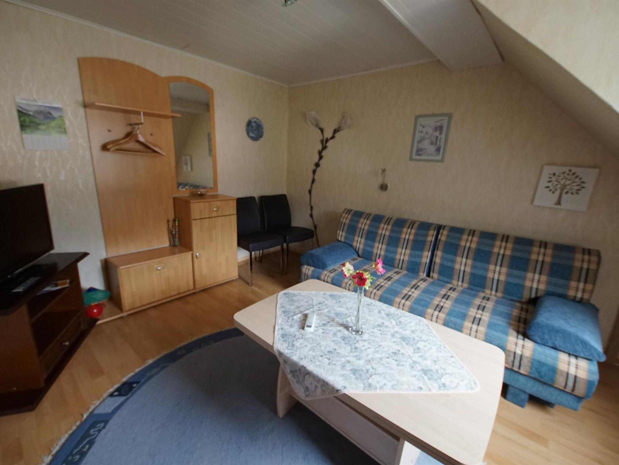 Mansardenwohnung im Haus der Vermieter mit 2 sep. Wohnchlafzimmer, TV, Bad mit DU/WC, gut ausgestatte sep. Küche mit Kaffeemaschine, Toaster, Wasserkocher, Mikrowelle. Blick auf Hexentanzplatz und Roßtrappe.i