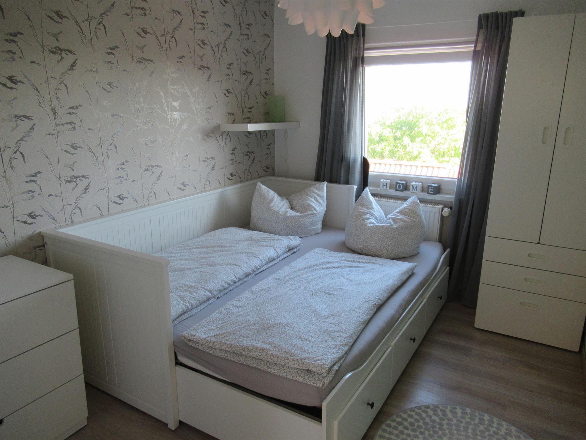 • Kinderzimmer: Bett (0,90 x 2,00m, ausziehbar zu 1,60 x 2,00m), Kleiderschrank, TV