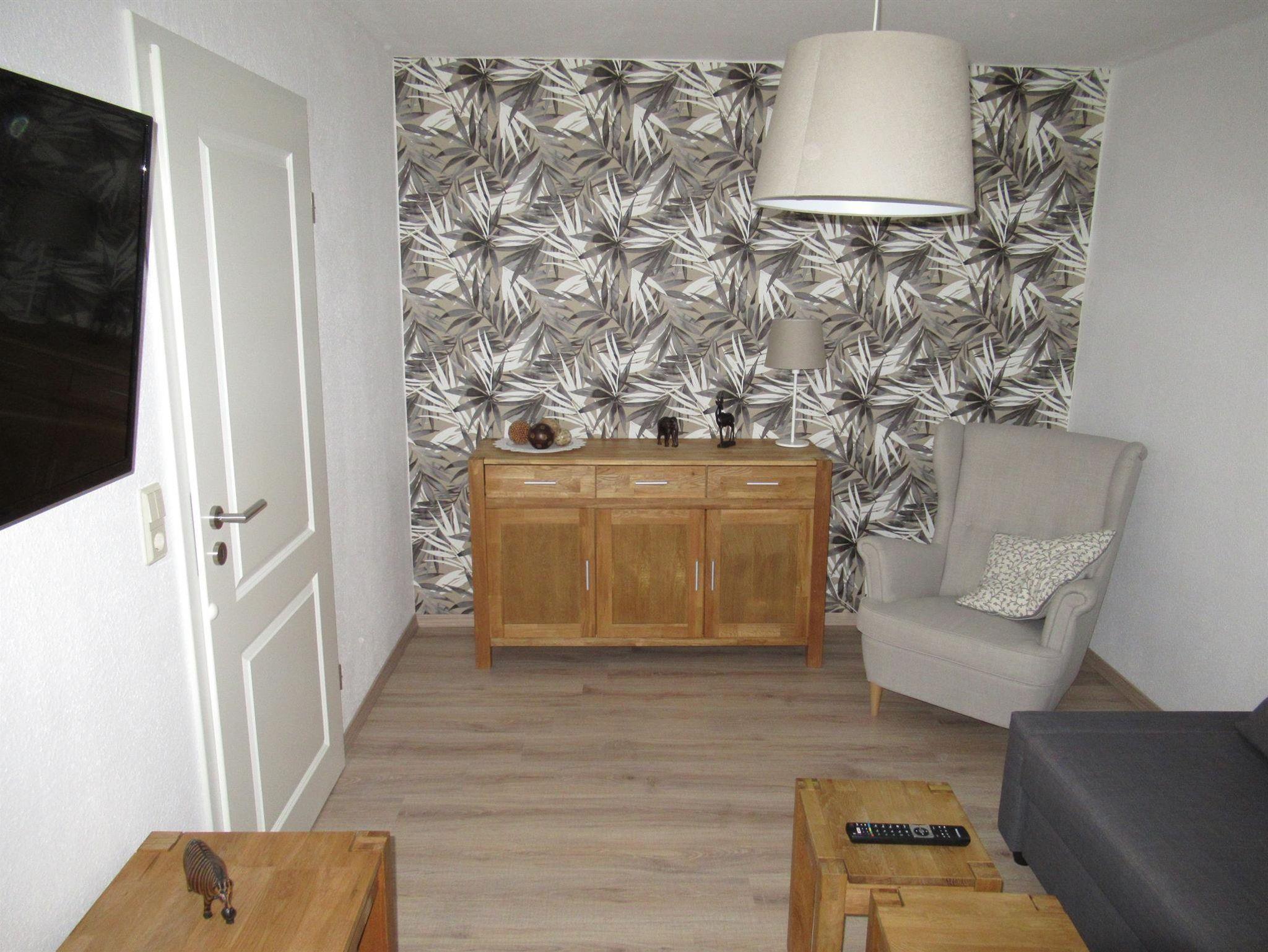 • Wohnzimmer: Schlafsofa, Sessel, TV, DVD-Player