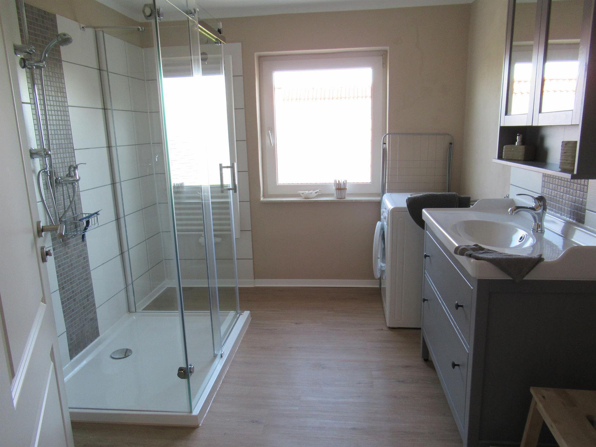 • Badezimmer: Dusche, WC, Waschbecken, Waschmaschine, Fußbodenheizung