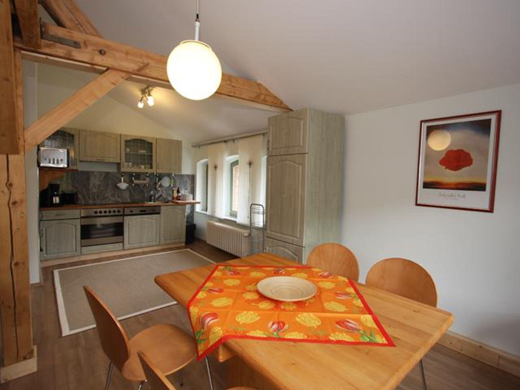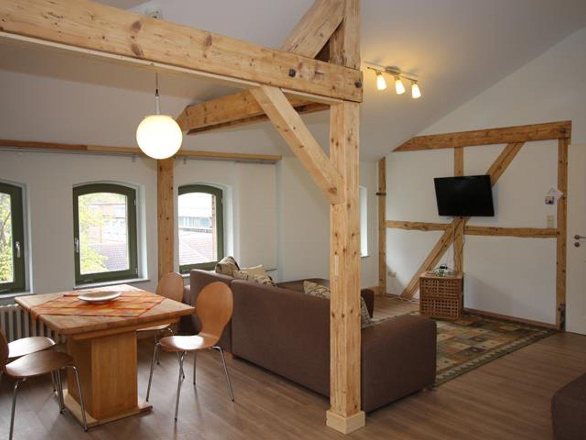 neu errichtete hübsche Wohnung mit einzigartigem Blick auf das Bodetal. Die Wohnung verfügt über eine kleine Diele mit Platz für die Garderobe , einem Schlafzimmer mit 2 Betten sowie einer großen Wohnküche mit Sitzecke und Platz für 2 weitere Schlafplätze sowie einer komplett eingerichteten Küchenzeile und einem Essplatz für 4 Personen. Eine hübsche Wohnung , die mit ihren alten Fachwerkteilen viel Atmosphäre ausstrahlt.