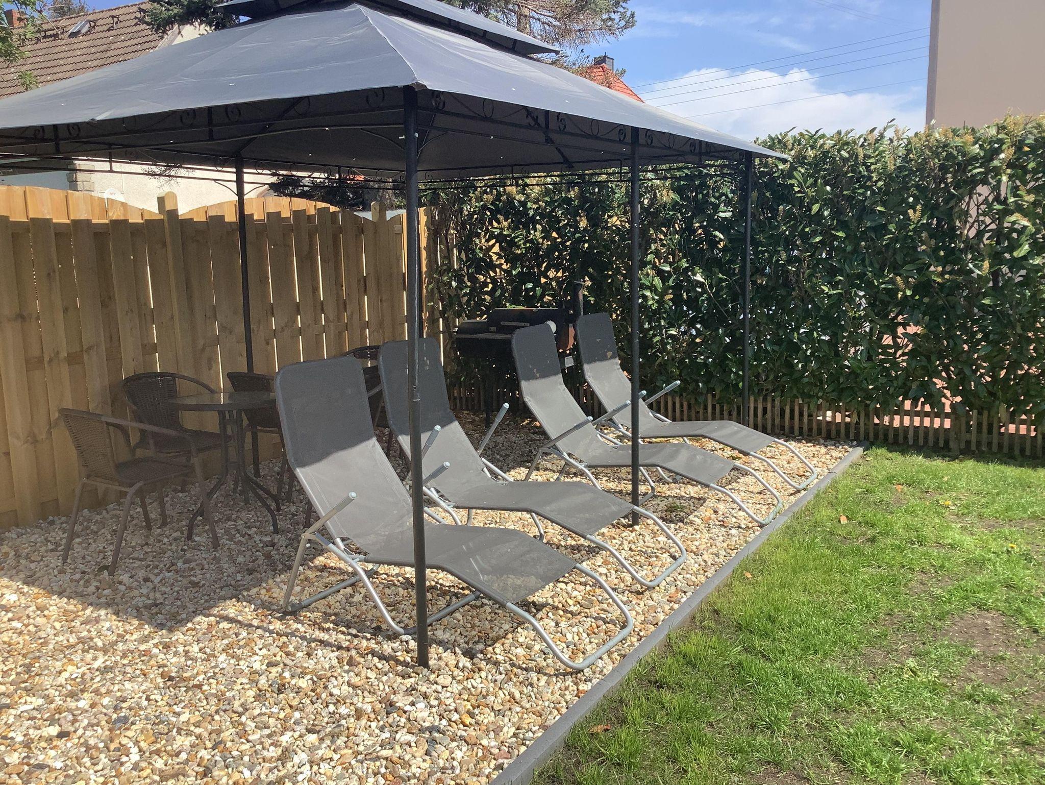 Die Ferienwohnung befindet sich im Haus der Vermieter, 50 Quadratmeter Wohnfläche mit Wohnzimmer, TV. Schlafzimmer mit Doppelbett, große Wohnküche mit Kaffeemaschine, Kühlschrank, Backofen, Geschirrspüler, Toaster, Wasserkocher und weiteren Küchengeräten. Bad mit DU/WC.