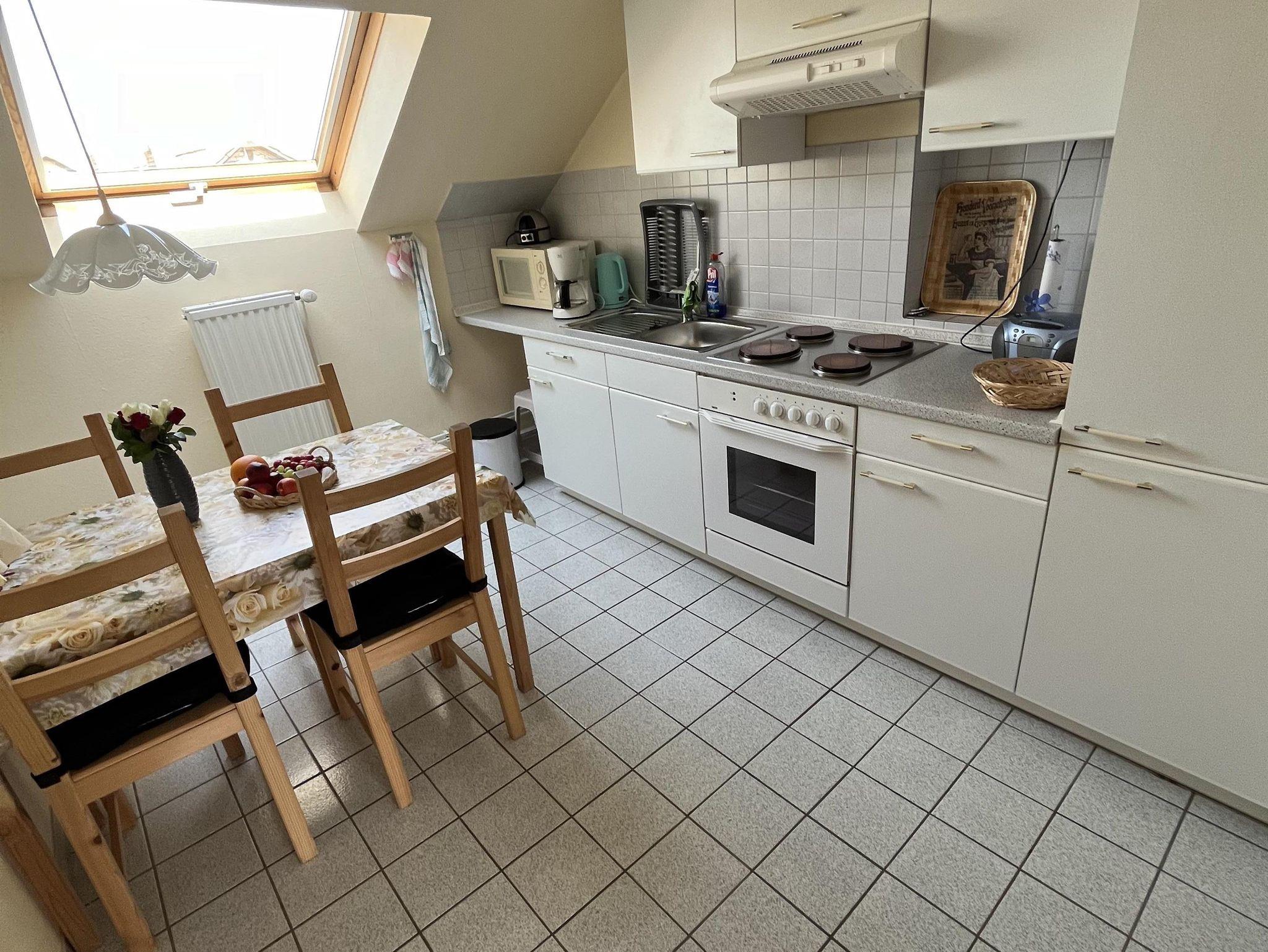 Unsere Ferienwohnung bietet Ihnen Wohnzimmer mit SAT-TV, vollständig eingerichtete Einbauküche einschließlich Backofen, Mikrowelle, Kühlschrank mit Gefrierfach, Kaffeemaschine, Wasserkocher, Toaster usw. Schlafzimmer mit Ehebett und ein weiteres Kinderzimmer mit Etagenbett. Bad mit DU/WC.