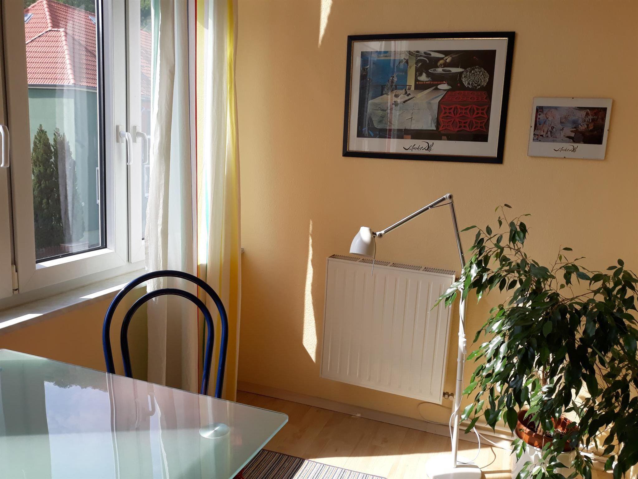 Ferienwohnung im Haus der Vermieter mit Wohnzimmer, TV, Couchecke, 2 sep. SchlaFzimmer, gut ausgestatte Küche, Bad mit Dusche/WC. Besonderheit der Wohnung: 2 Veranden zur Nord-und Südseite mit Blick auf Wald und Berge und Panoramablick über Thale.