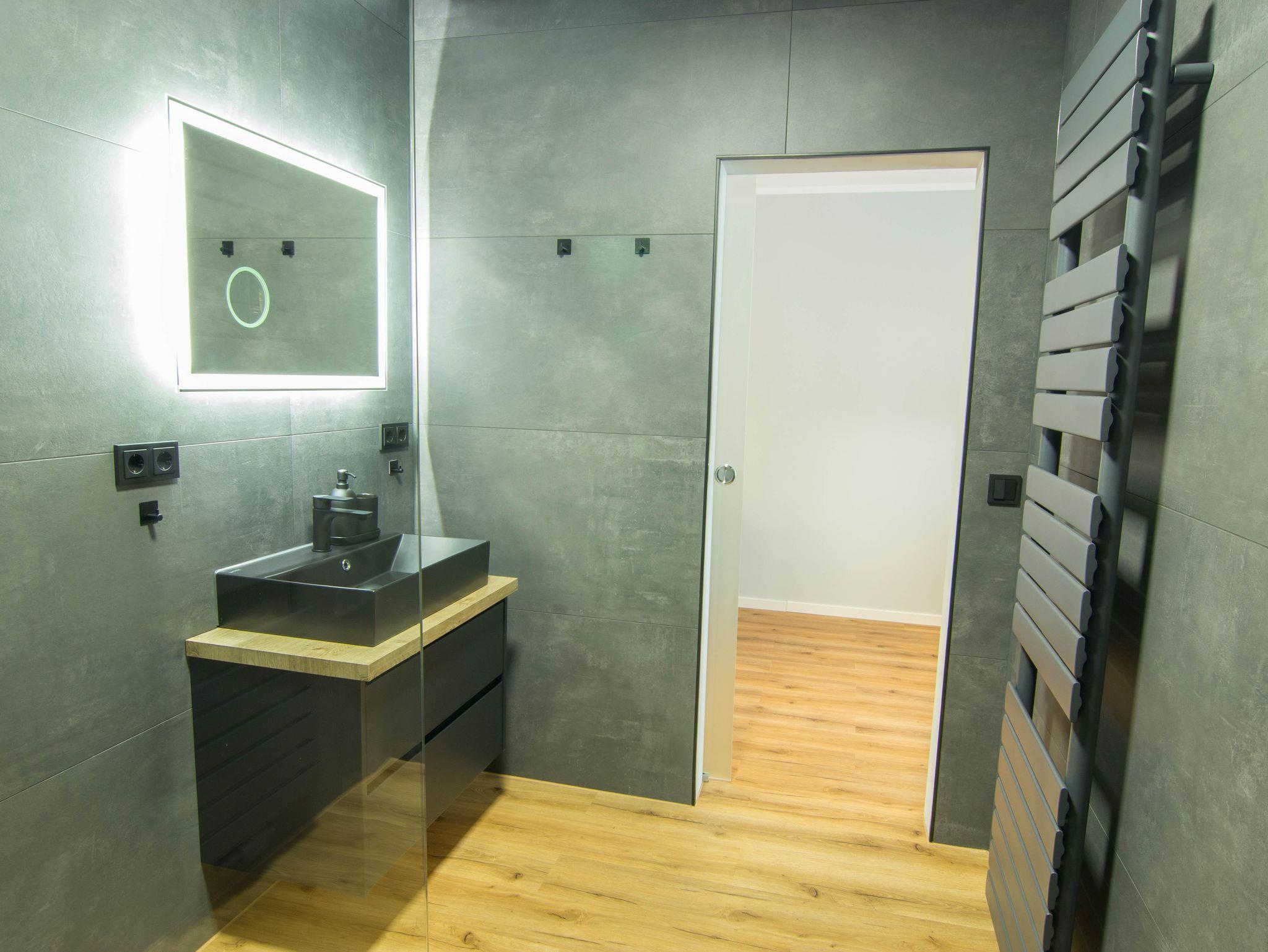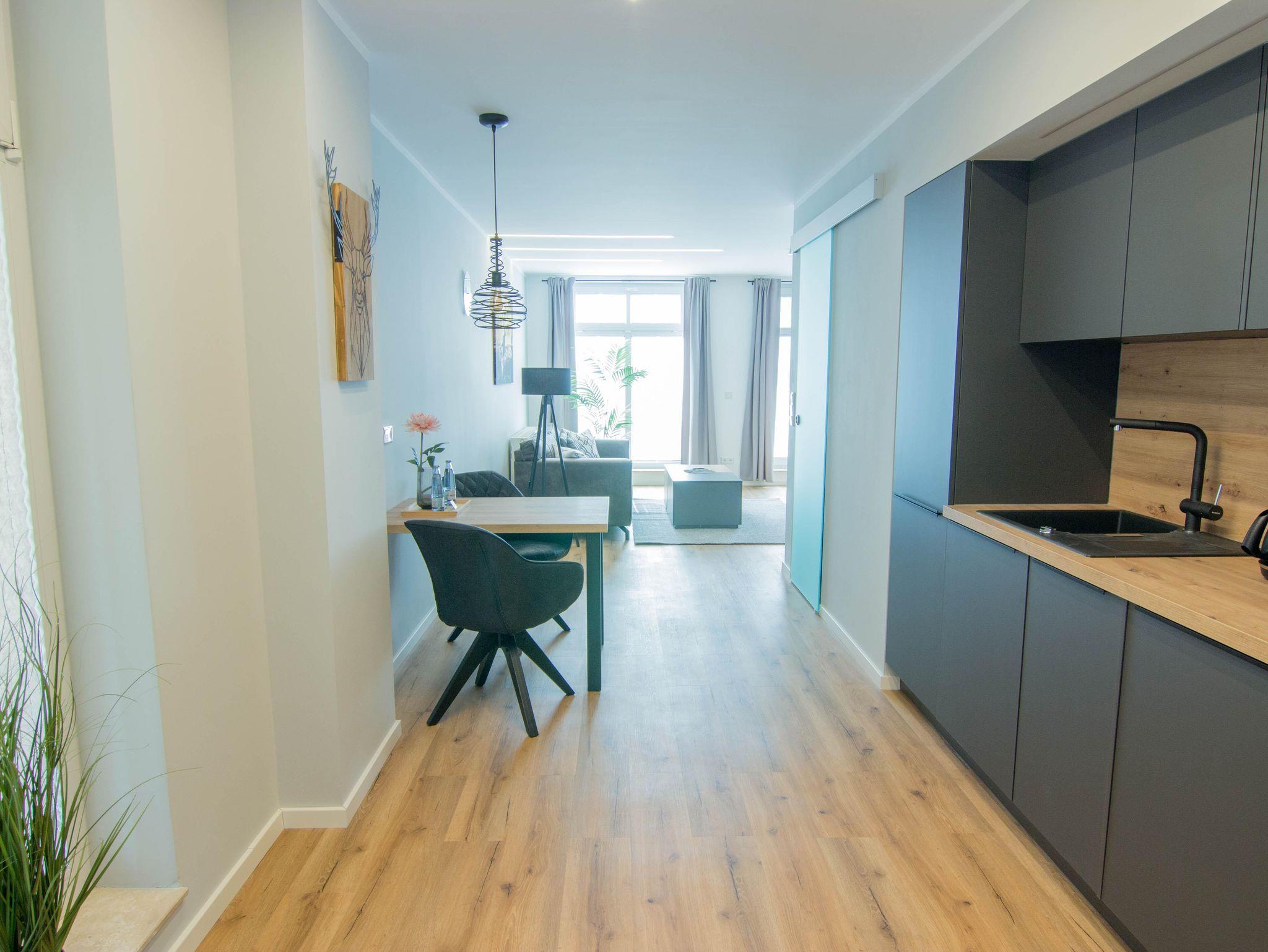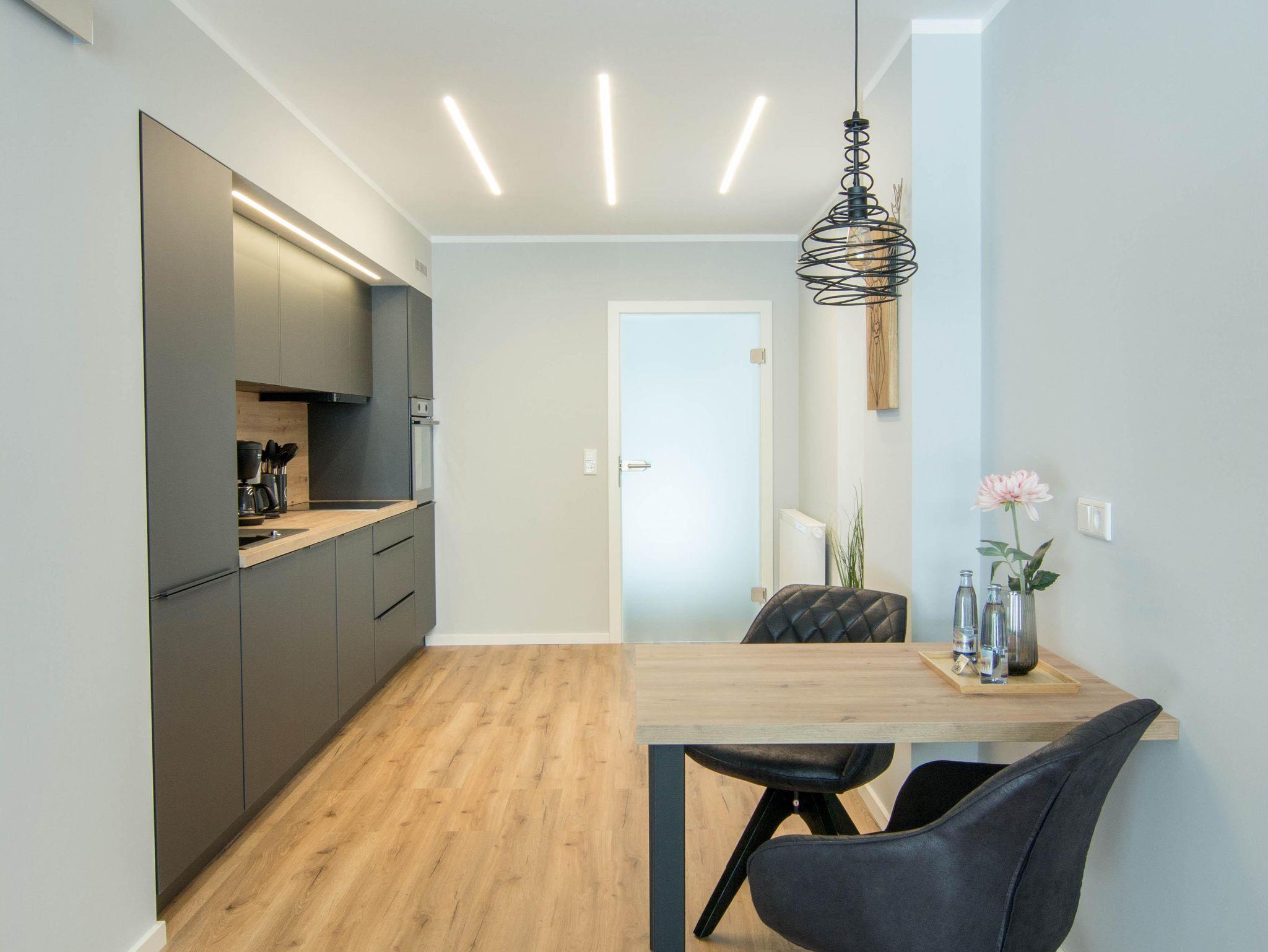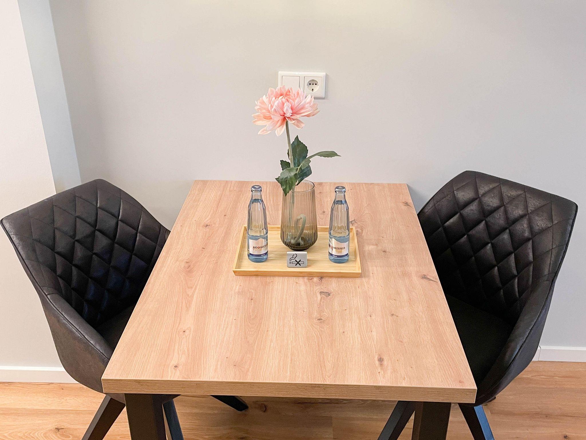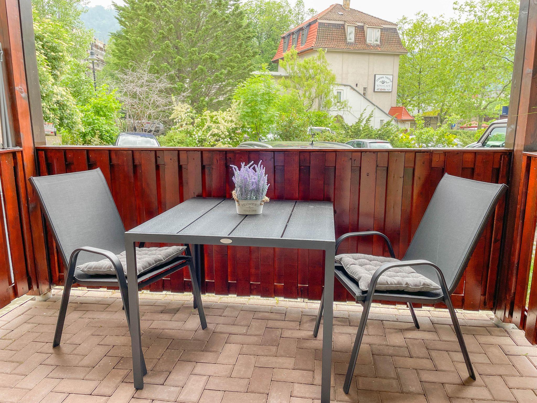 Die im Juni 2023 fertiggestellte Ferienwohnung ist modern und komfortabel eingerichtet. Das Studio-Appartement befindet sich mit einem separaten Eingang im Erdgeschoss eines Mehrfamilienhauses, im Zentrum von Thale und ist optimal für 1-2 Personen. Das 50 qm große Studio besitzt eine komplett ausgestattete Wohnküche mit Geschirrspüler, Kaffeemaschine (Filterkaffee), Wasserkocher, Toaster, Induktionskochfeld, Backofen, Kühlschrank mit Gefrierfach, Mikrowelle, Eierkocher und ausreichend Geschirr. Der Schlaf-Wohnbereich ist mit einer gemütlichen Couch, einem Smart-TV sowie einem gemütlichen Bett (180 x 200) ausgestattet. Das moderne Badezimmer ist mit einer Dusche, WC, Handtuchheizung, Waschbecken, Fön sowie mit einem beleuchteten Wandspiegel mit integriertem Kosmetikspiegel ausgestattet. Die Terrasse lädt abends zum Verweilen ein. Bettwäsche/Handtücher sind in der Erstausstattung vorhanden. Für die Ferienwohnung steht Ihnen ein privater Parkplatz kostenlos zur Verfügung.