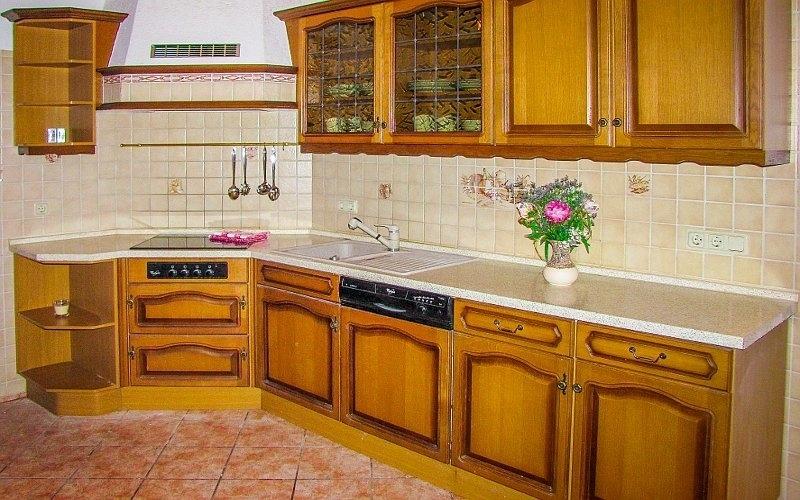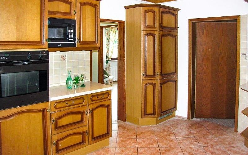 - komplett ausgestattete Küche im Landhausstil mit Kühlschrank und Gefrierfach, Herd mit Backofen, Spülmaschine, Kaffeemaschine, Toaster & Geschirrtücher und Radio