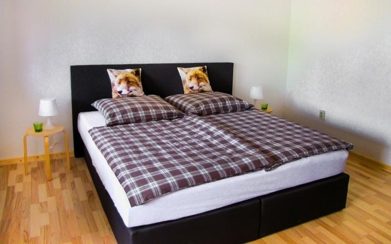- zwei Schlafzimmer mit Boxspringbetten (1.80×2.00m) für einen erholsamen Schlaf, Kleiderschrank & Bettwäsche