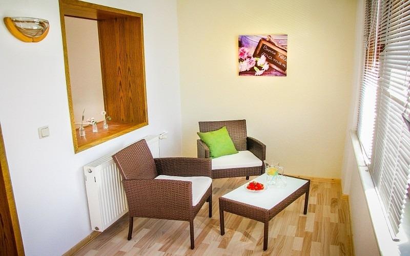 Die Ferienwohnung im Erdgeschoss bietet auf 90 qm² viel Platz zum toben, entdecken, spielen und entspannen. Ein besonderes Highlight ist die sonnige Veranda mit gemütlicher Sitzgruppe. Hier können Sie bei einem Glas Wein entspannt den Tag ausklingen lassen. Eine zweite Veranda mit bequemen Schlafsofa eignet sich perfekt für Ihre Kinder oder eine Begleitung.