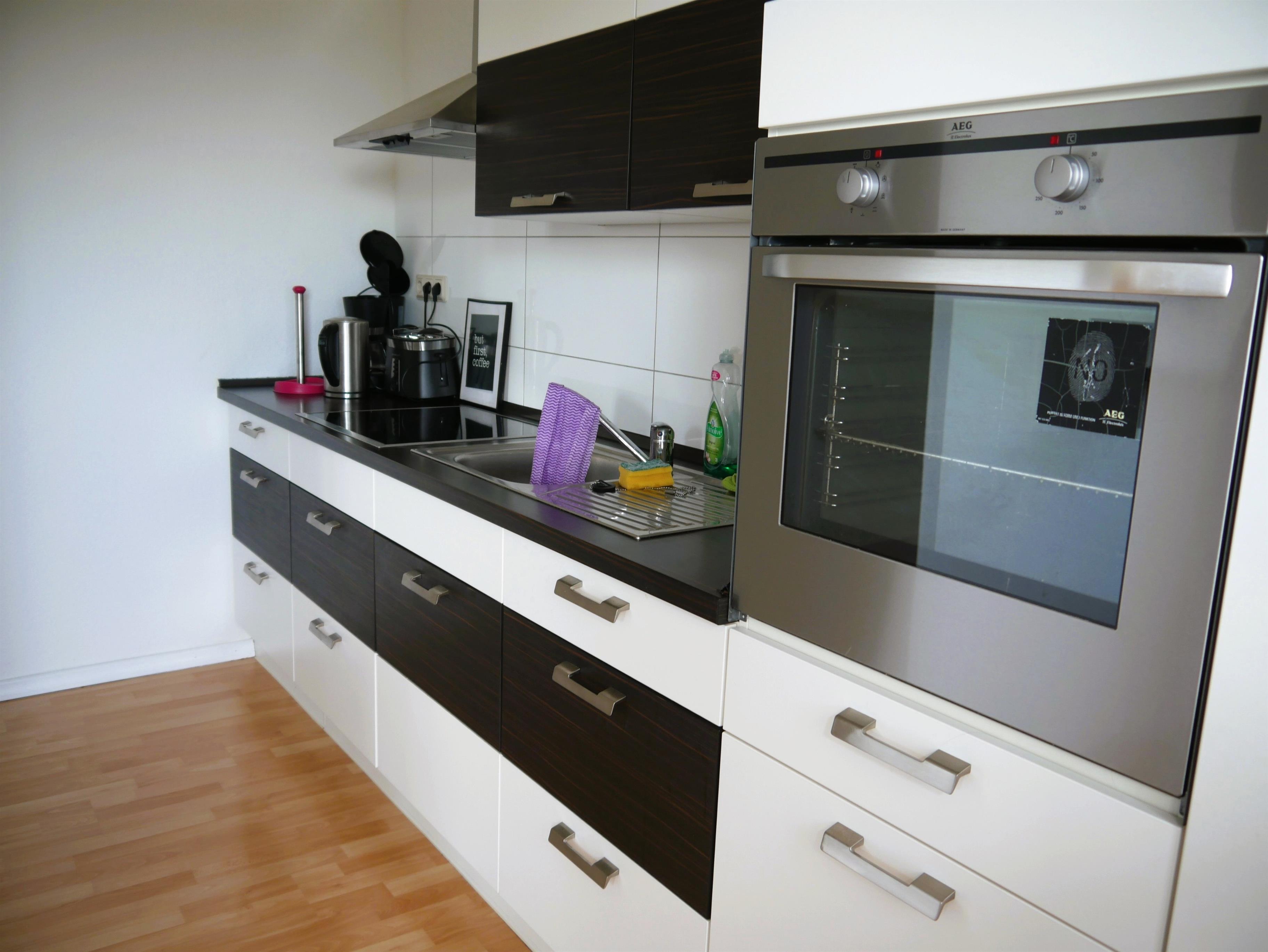 - komplett ausgestattete Küche mit Kühlschrank, Herd mit Backofen, Kaffeemaschine, Wasserkocher, Toaster & Geschirrtücher