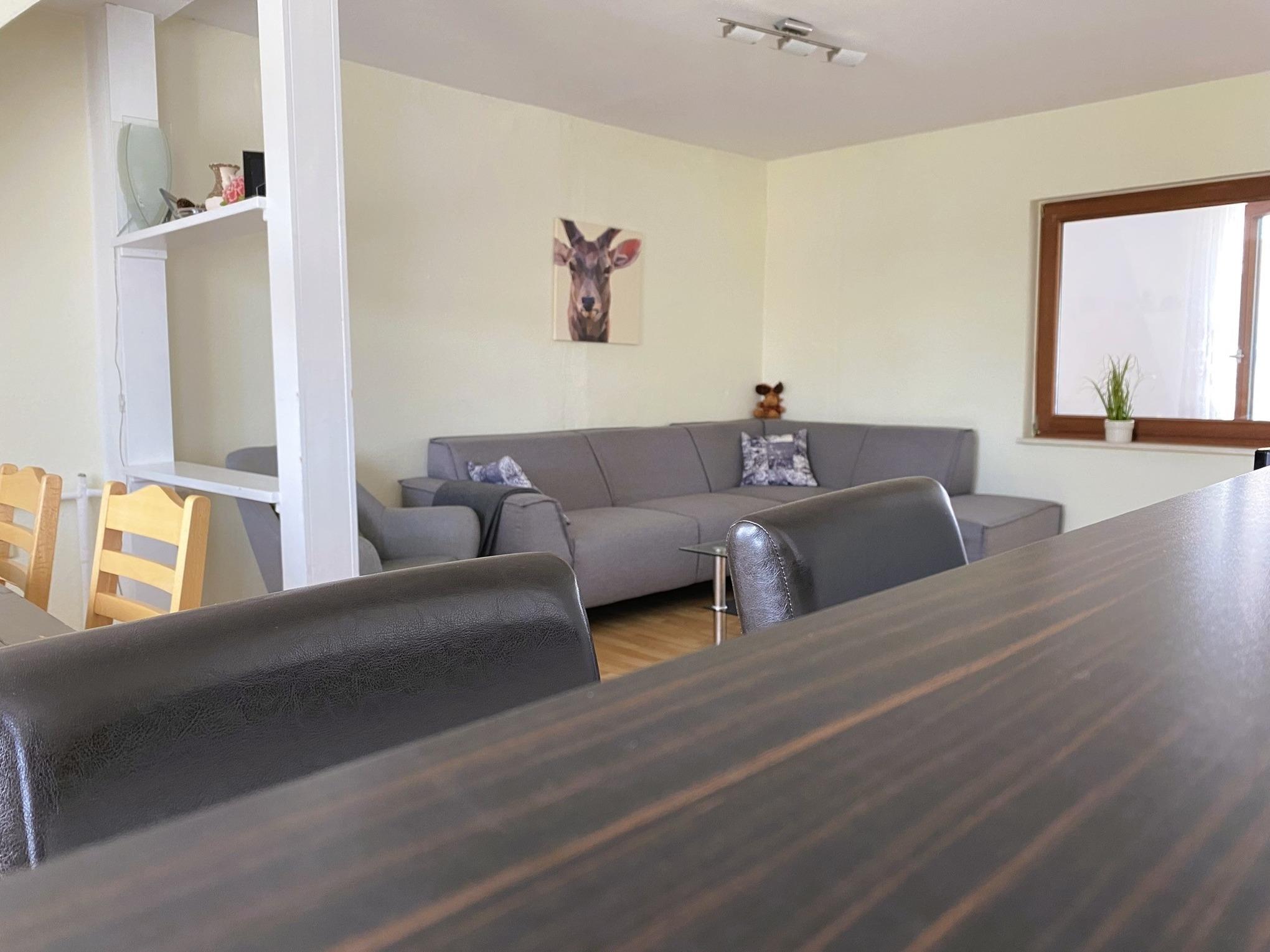 Die Ferienwohnung im Obergeschoss bietet mit ca. 85 qm² ebenfalls genug Platz für die ganze Familie. Auch diese Wohnung bietet eine sonnige Veranda mit einem bequemen Schlafsofa zum lesen, entspannen oder träumen mit Blick auf wunderschöne dunkelgrüne Tannenbäume.