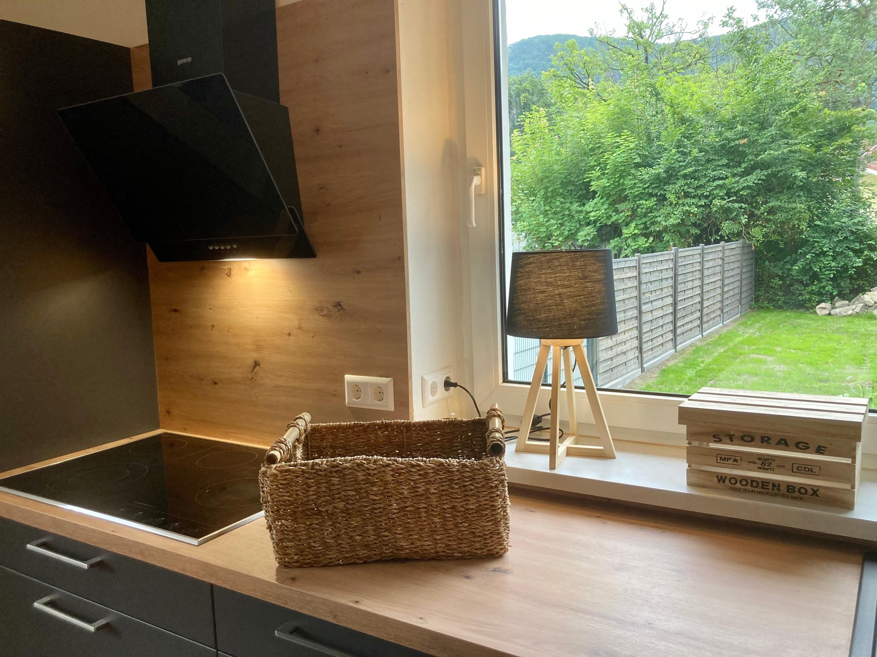 * Moderne, voll ausgestattete Küche mit hochwertigen Geräten (Spülmaschine, Backofen, Induktionskochfeld, Kühlschrank mit Gefrierfach, Kaffeemaschine, Toaster, Wasserkocher, u.v.m.)