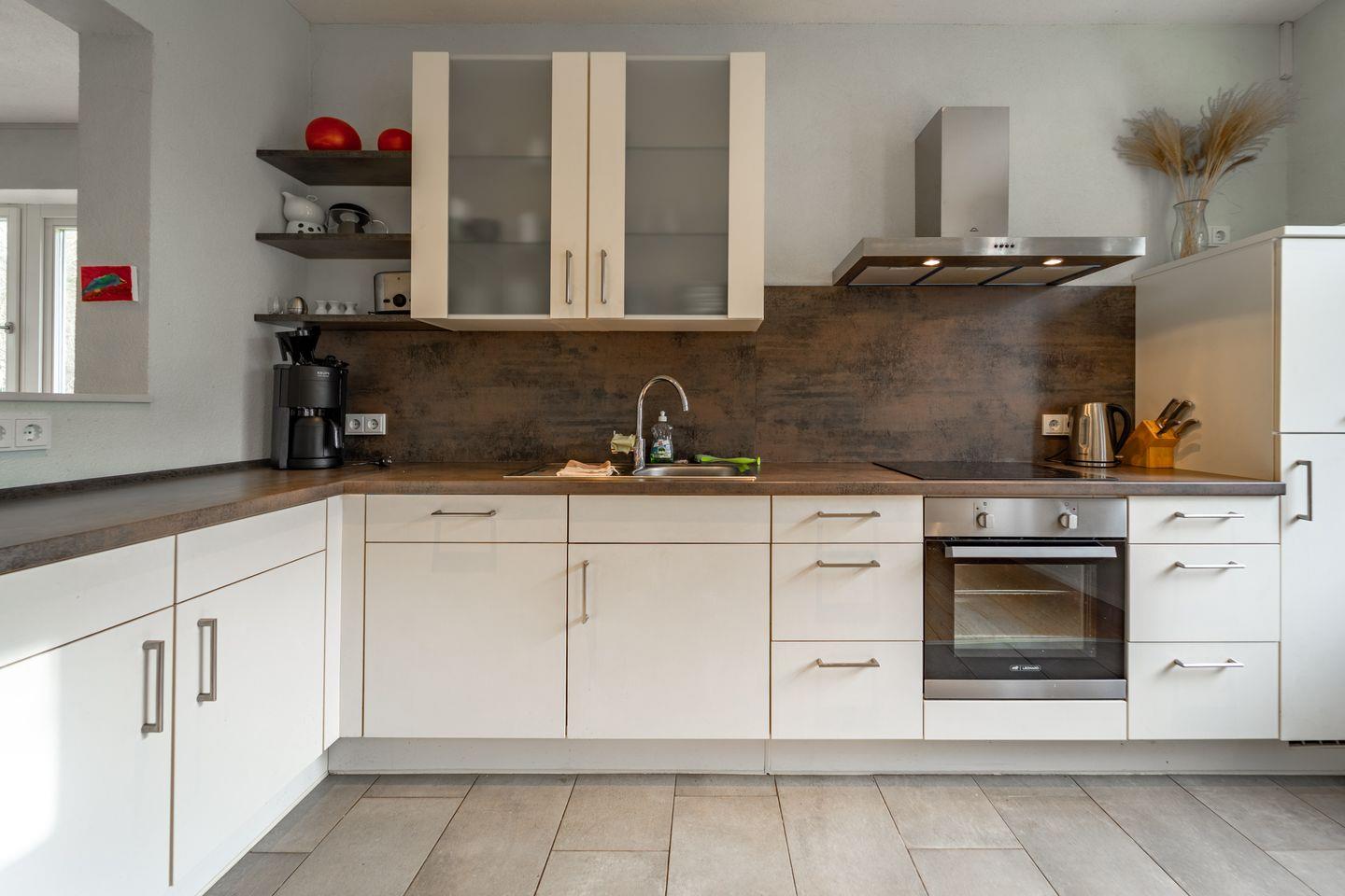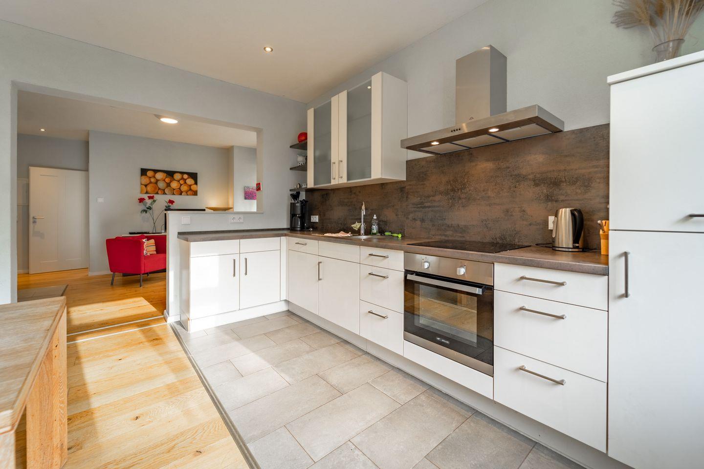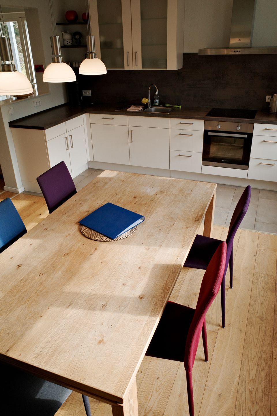 Ein modernes Badezimmer mit Dusche und WC sowie ein zusätzliches Gäste-WC sorgen für Komfort. In der geräumigen Wohnküche, die Platz für bis zu 12 Personen bietet, kannst du gemeinsam kochen, essen, spielen oder Pläne für den nächsten Ausflug schmieden. Ausgestattet ist sie unter anderem mit Geschirrspüler, Mikrowelle, Kühlschrank und Wasserkocher.