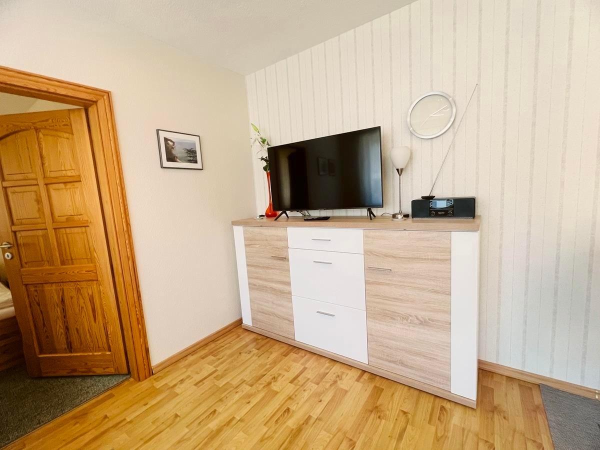 - Ein großzügiges Wohnzimmer mit gemütlicher Sitzecke und Fernseher