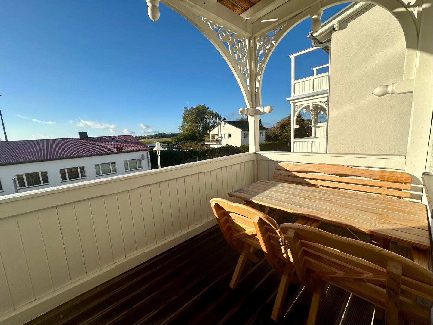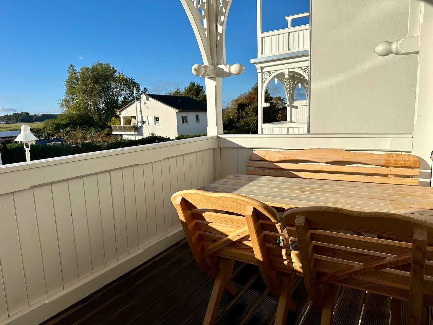 Auf dem großen Balkon mit Gartenmöbeln haben Sie das perfekte Ostseefeeling.