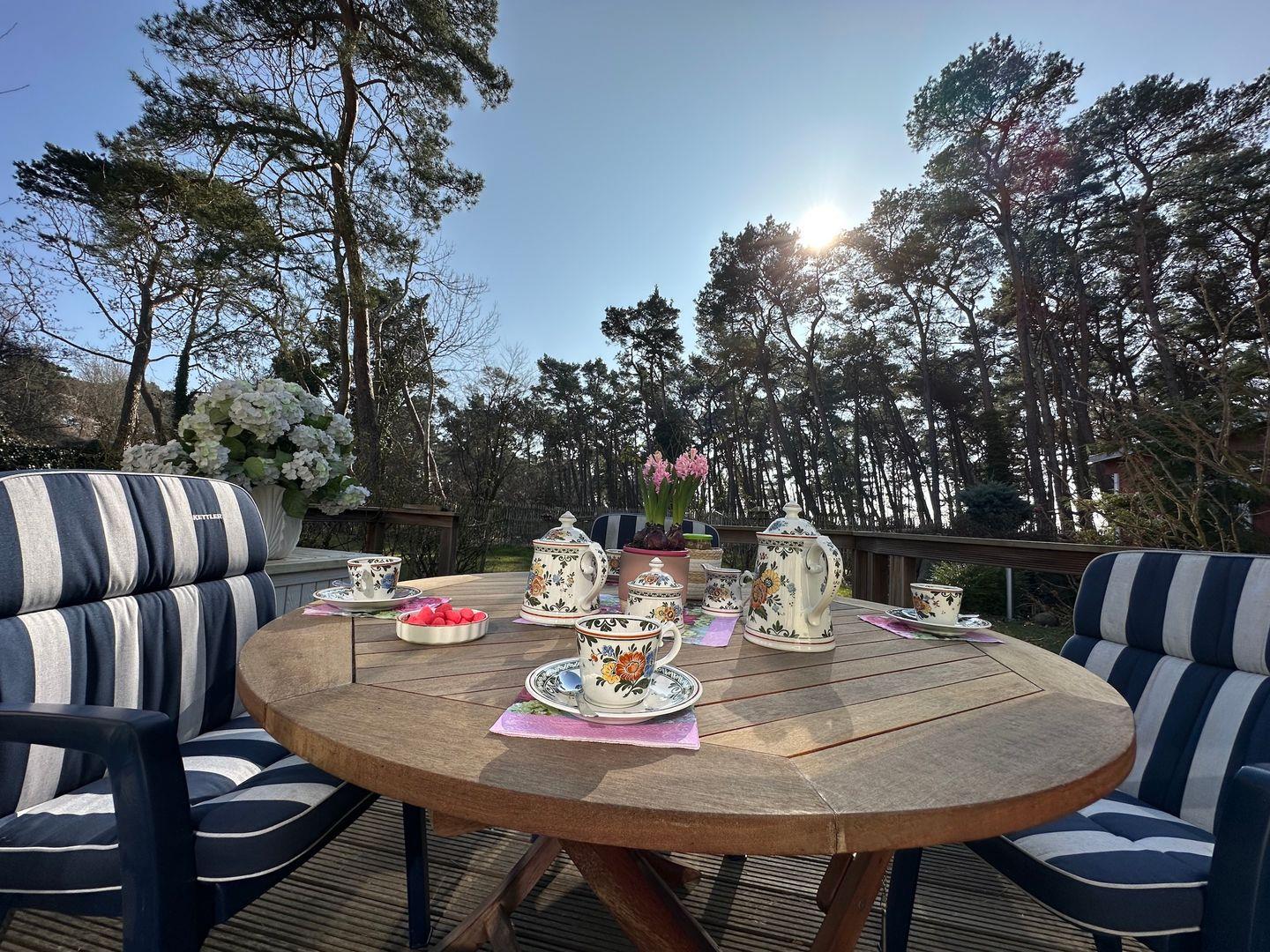 Morgens werden sie geweckt von Vogelgezwitscher, dem Rascheln der Baumkronen des Kiefernwäldchens oder von der hörbaren Ostseebrandung von einem der drei fußläufig erreichbaren Strände.