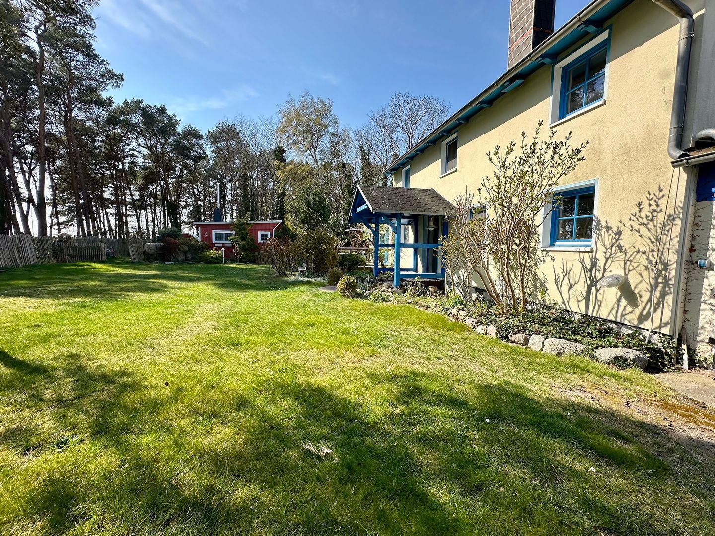 Am Rande des Waldes, nur 50 Meter vom Weststrand entfernt, im wunderschönen Ostseebad Thiessow, befindet sich auf einem großen, eingezäunten Grundstück das „Haus am Meer“.