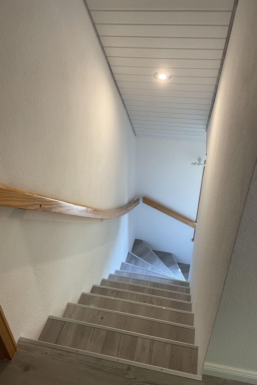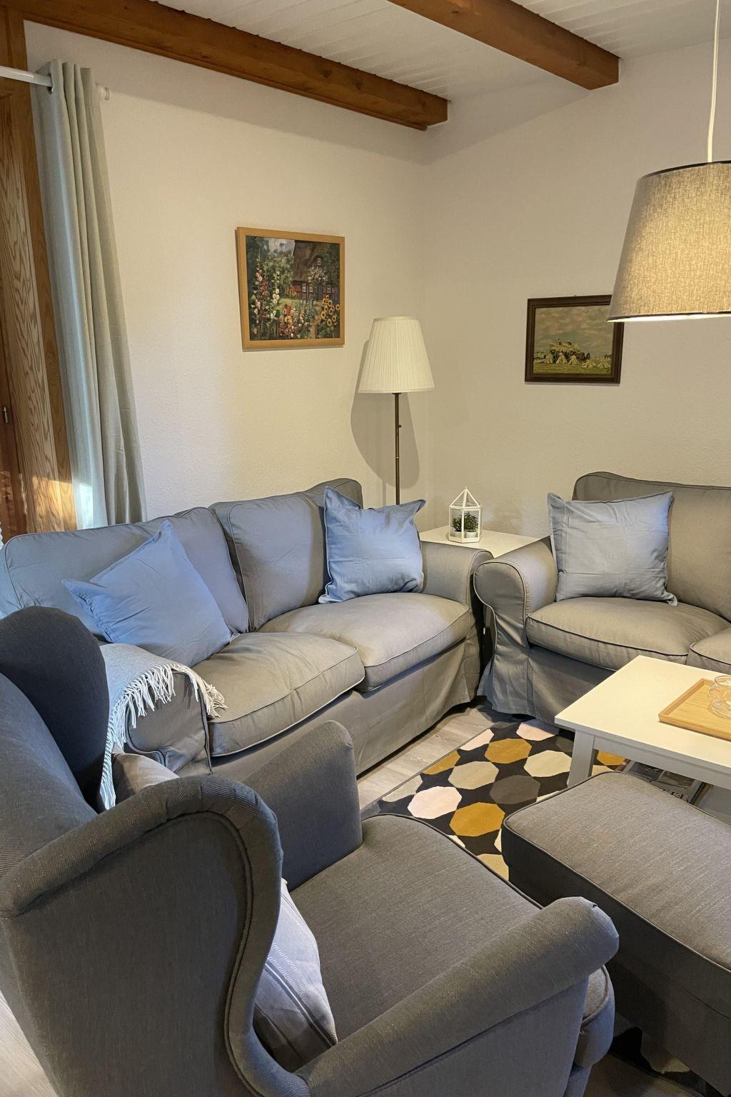 The ground floor has a very cosy and spacious living room with a fireplace stove, a rustic kitchen and dining corner, satellite TV, wireless Internet access and a stereo system. There is a very well-equipped kitchen with a dishwasher, fridge with freezer compartment, stove with oven, toaster, coffee machine and an electric mixer. The separate bedroom is furnished with a double bed (180 x 200cm) and there is also a little storage room. A child’s bed is available on request. The shower room with a private sauna with seating for four people provides a feeling of well-being. There is also a separate WC with a washbasin. The attic has a rustic living and sleeping room with cosy sloped ceilings paneled with wood, a sleeping corner with a double bed (180 x 200cm), a lounge corner with comfortable seating and another separate bedroom with two single beds (90 x 200cm), as well as a shower room with a WC. There is a shelf with interesting literature and board games. All the rooms have gas central heating and the living room, hallway, shower room an WC on the ground floor are fitted with under-floor heating.