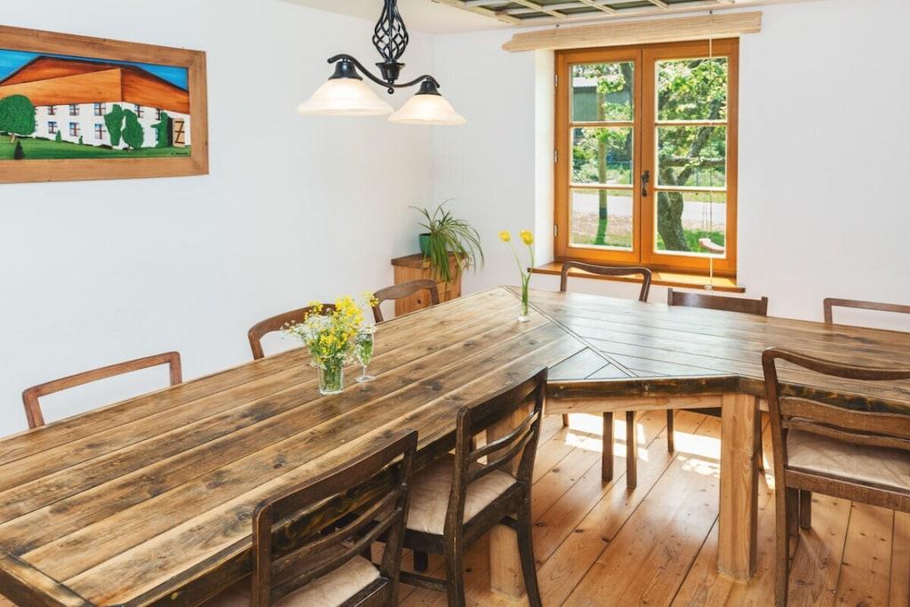 Leiligheten tilbyr komfortabel boareal for åtte personer på omtrent 140 m² fordelt over to etasjer. Den består av et kjøkken med stor spiseplass, et bad, en stue, en veranda, to soverom og en hems. Tregulv i stue, soverom og kjøkken skaper en hyggelig atmosfære. Et spesielt høydepunkt ved denne leiligheten er verandaen – en sømløs forbindelse mellom inne og ute. Det romslige kjøkkenet med spiseplass gir god plass ikke bare til måltider, men også til spill og sosialisering. Peisen i stuen bidrar til den koselige atmosfæren. Den 5000 m² store eiendommen og den 400 m² store låven gir ekstra plass.