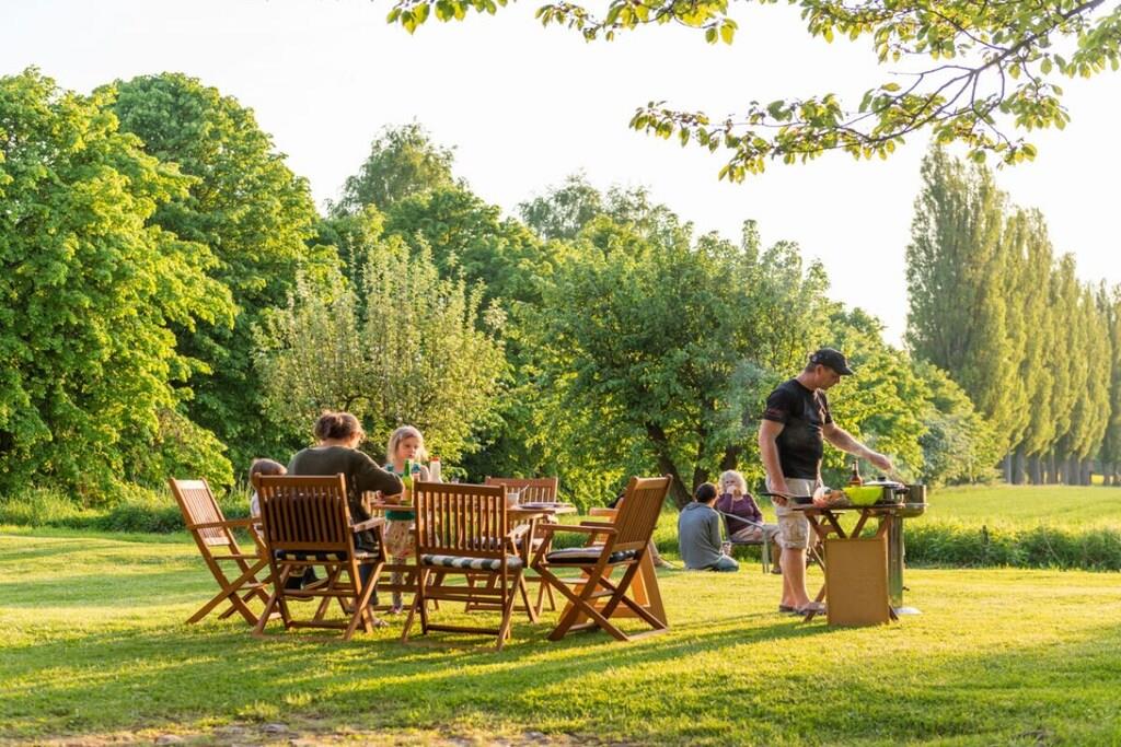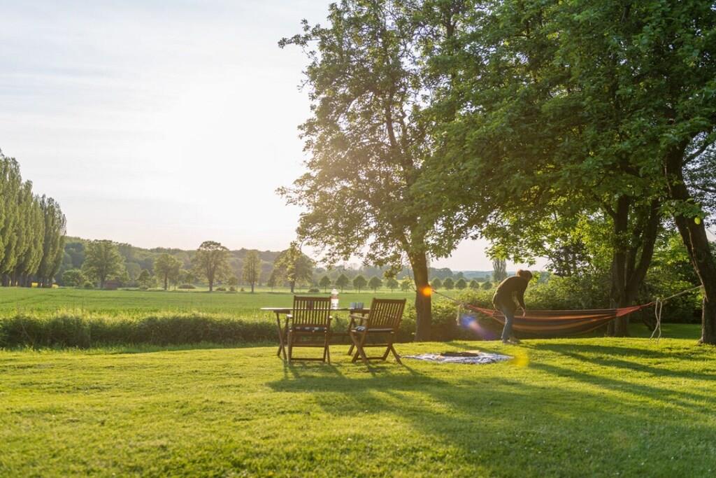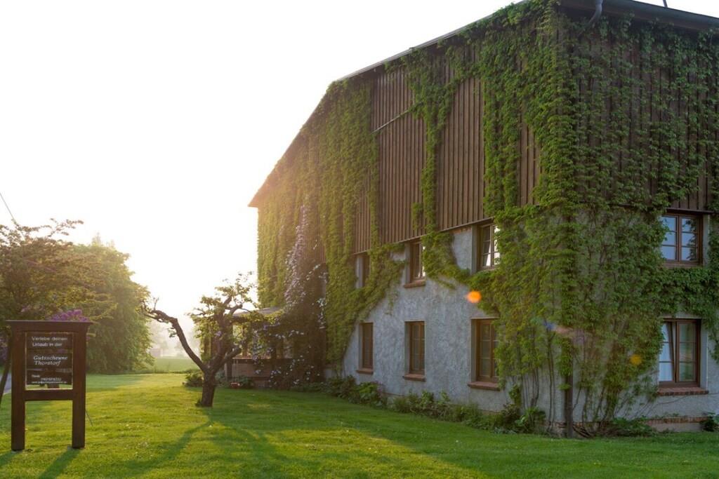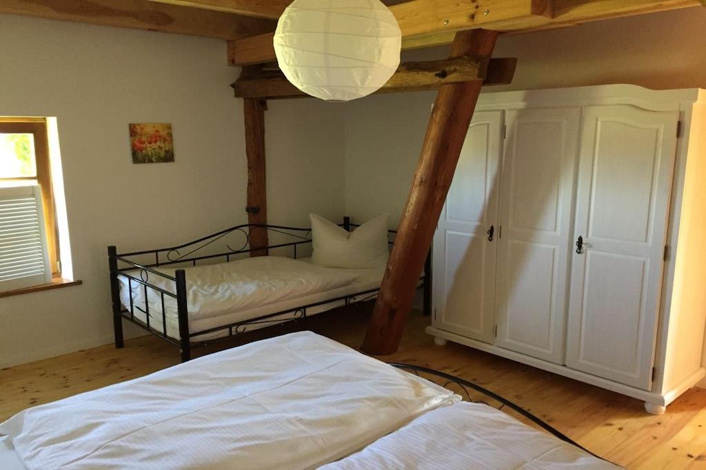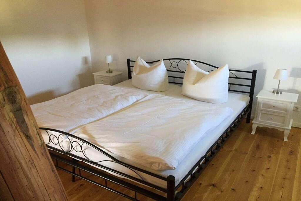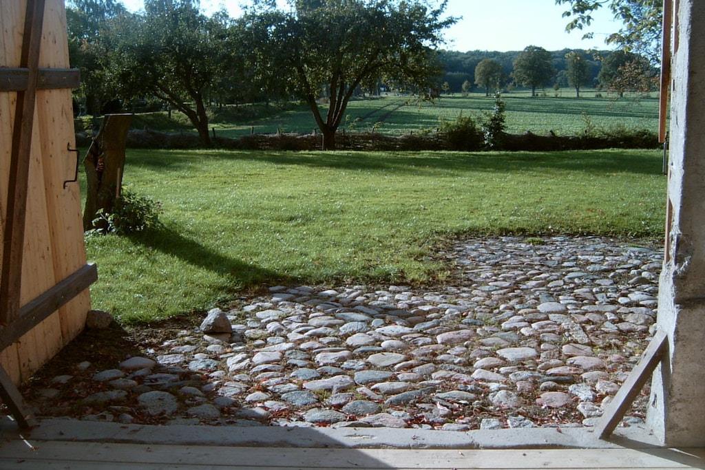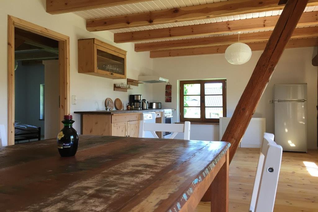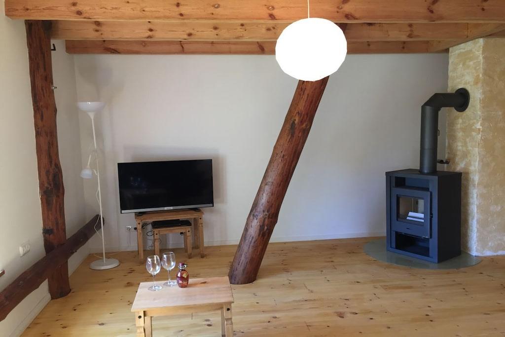 Ferieleiligheten tilbyr komfortabel og hyggelig innkvartering for seks personer på omtrent 100 m². Den består av et kjøkken med stor spiseplass, et bad, en stue og to soverom. Tregulv i stue, soverom og kjøkken skaper en hyggelig atmosfære. Det romslige spisekjøkkenet gir god plass ikke bare til måltider, men også til spill og sosialisering. Peisen i stuen bidrar til den koselige atmosfæren. Ekstra plass er tilgjengelig på den 5000 m² store eiendommen og i den 400 m² store låven.