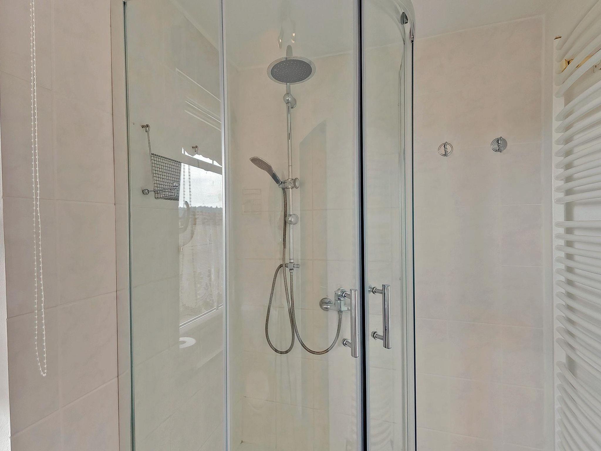 Badezimmer vor dem Schlafzimmer mit Dusche/WC/ Waschbecken, Handtuchtrockner zur alleinigen Nutzung.
