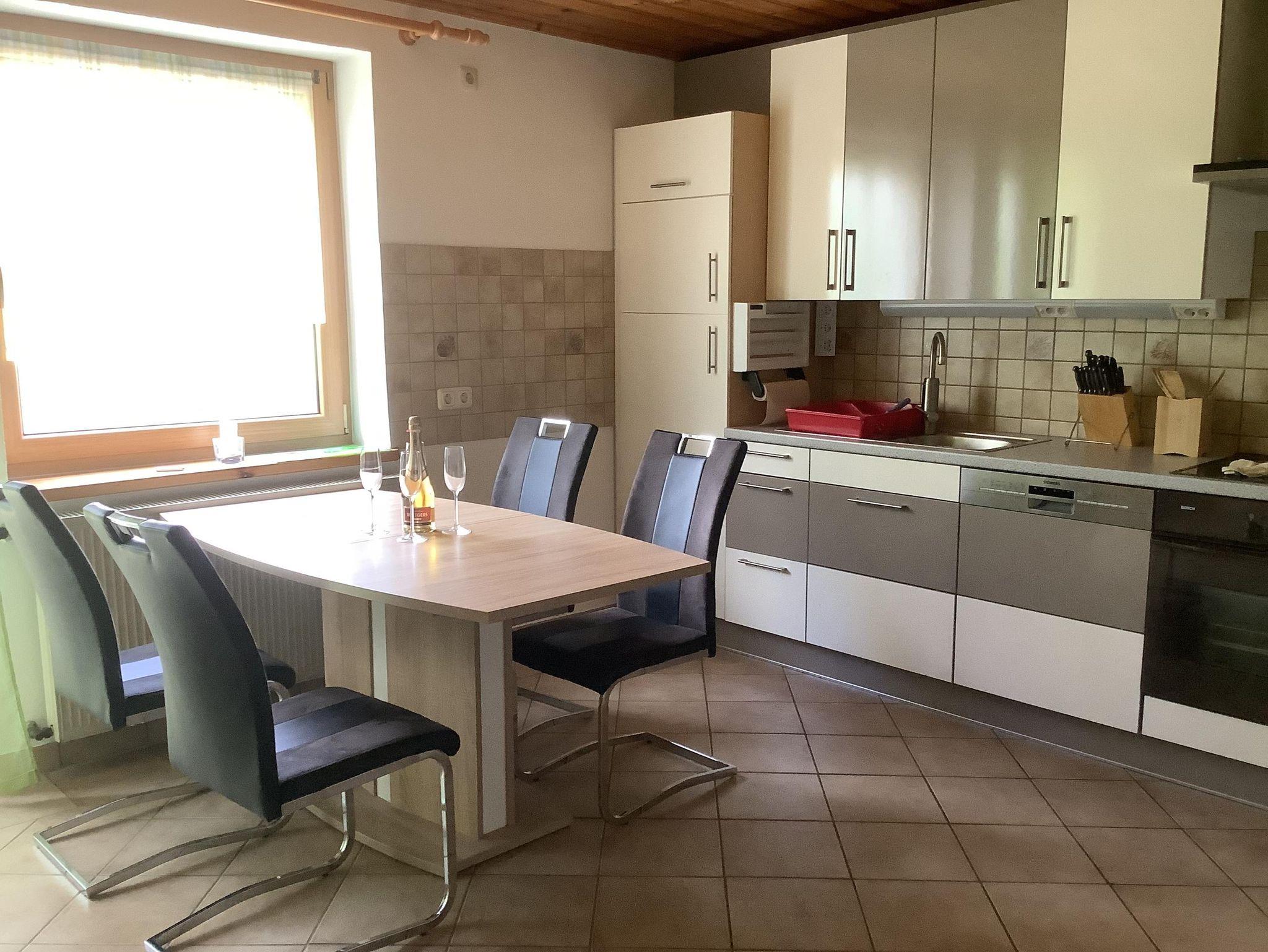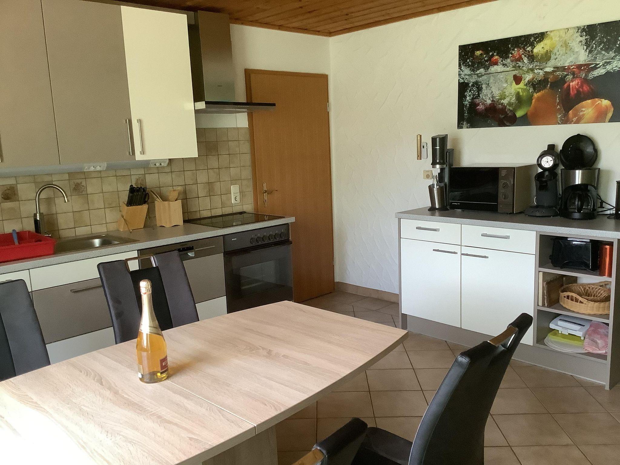 Unsere gemütliche Ferienwohnung mit 85 m² Wohnfläche bietet Platz für bis zu 6 Personen. Der Wohnraum mit Couch und Essplatz lädt zum Verweilen ein. Die komplett ausgestattete Küchenzeile mit Kühlschrank, Spülmaschine, Herd, Backofen, Mikrowelle, Wasserkocher, Toaster und Kaffeemaschine lässt keine Wünsche offen. Gäste-WLan ist kostenslos vorhanden. Die Wohnung verfügt über 1 Schlafzimmer mit Doppelbett sowie 1 Schlafzimmer mit Doppelbett und Etagenbett. Alle Matratzen wurden in 2021 erneuert(u.a. Emma one). Für Babys sind die wichtigsten Utensilien wie Bett, Hochstuhl und Schaukelpferd vorhanden. Das geräumige Badezimmer mit Dusche und Badewanne rundet das Gesamtbild ab. Zum Reinigen Ihrer Kleidung stehen eine Waschmaschine in der Wohnung und ein Trockner im Haus gegen Gebühr zur Verfügung. Vor allem im Sommer können Sie entspannte Grillabende in unserem Garten verbringen. Der Gartenpool verfügt über ein Schiebedach und eine Gegenstromanlage. Von ca. Juni bis September/Oktober, je nach Wetterlage, wird der Pool über Solarplatten geheizt. Tierfreunde freuen sich über unsere freilaufende Katze, ein nicht mehr reitfähiges Pferd, drei Schildkröten und Fische.