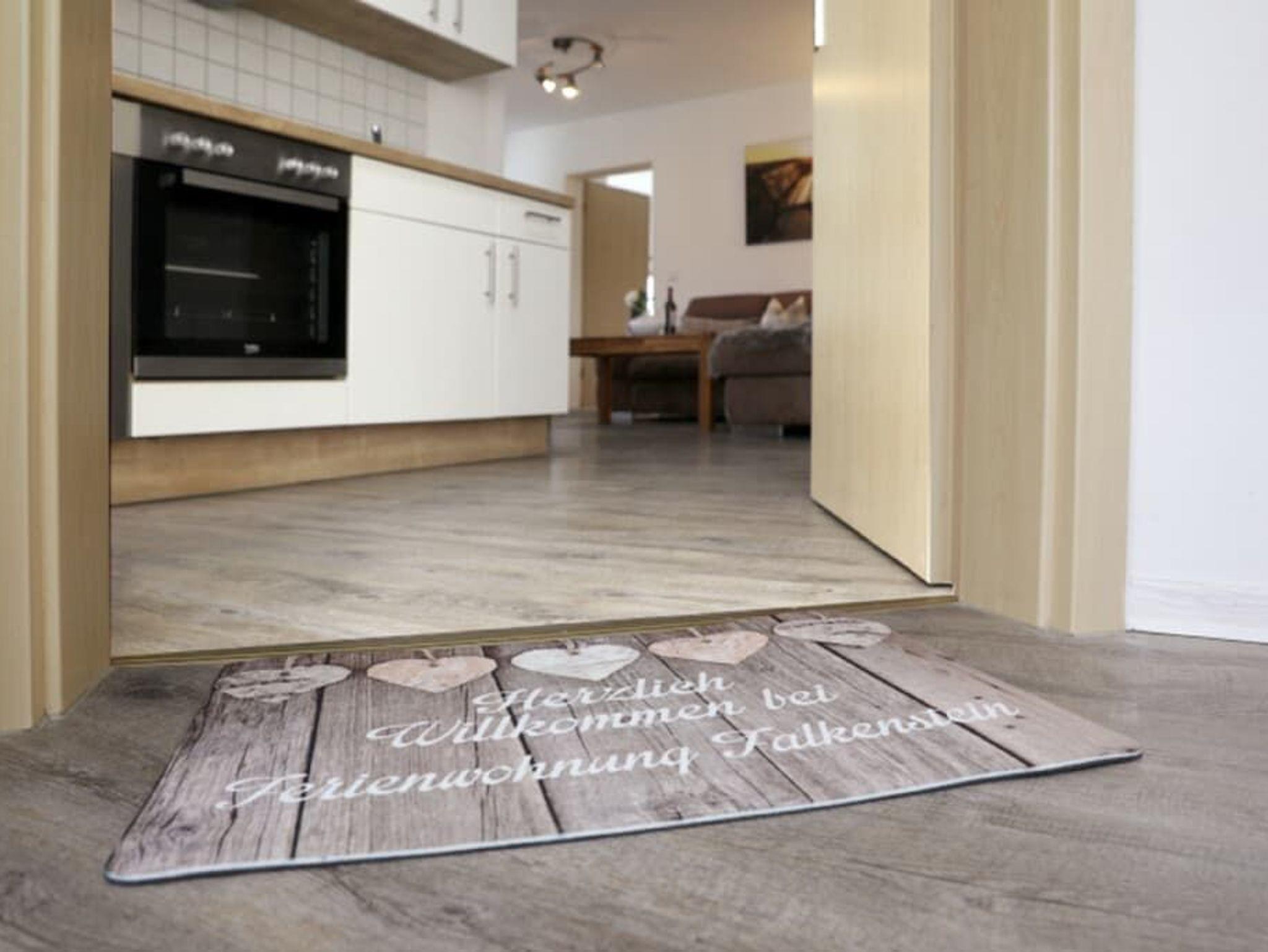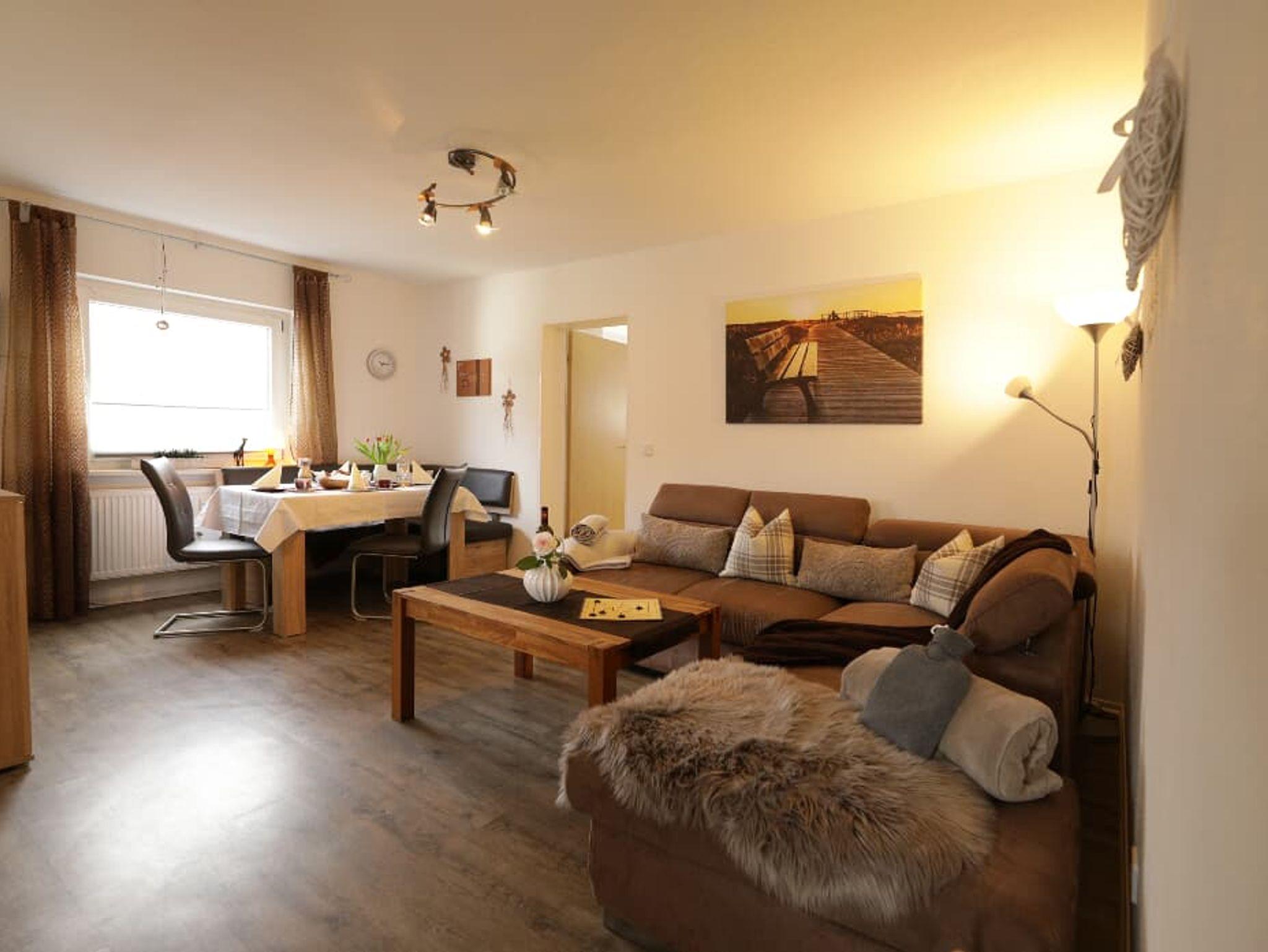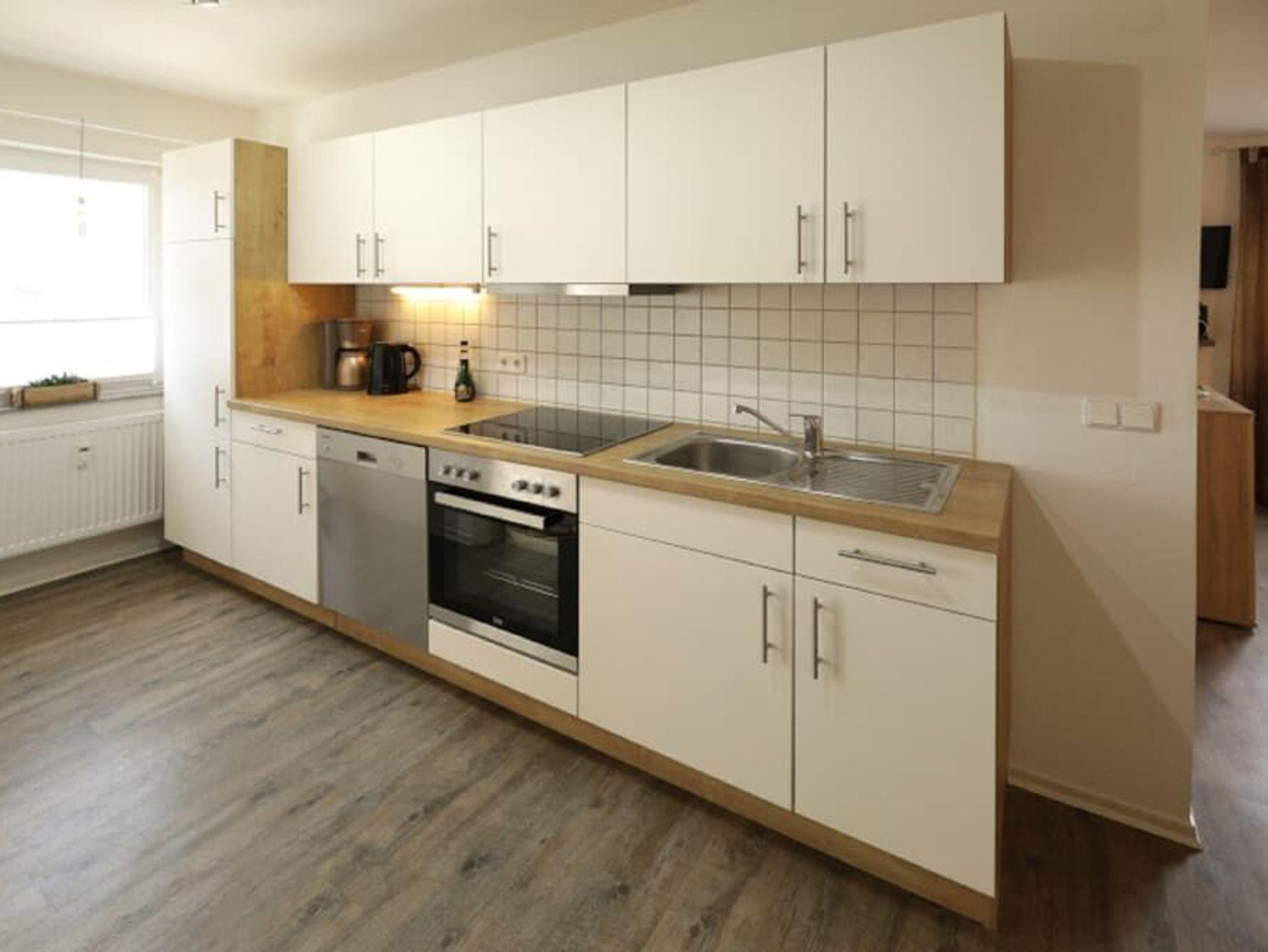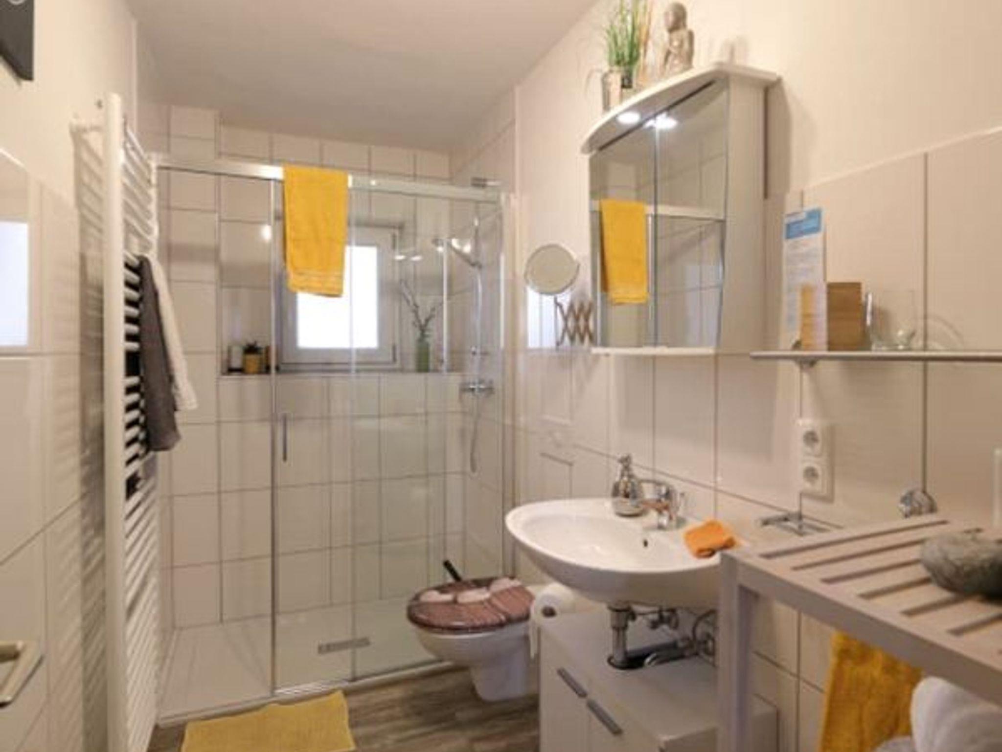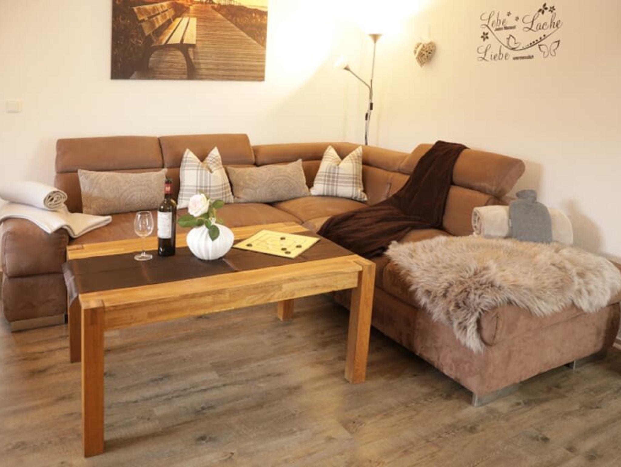 Die Ferienwohnung befindet sich im Erdgeschoss, hat einen eigenen Eingang und bietet auf 68qm Platz für bis zu 4 Personen. Sie verfügt über ein Wohnzimmer mit TV und Stereoanlage sowie eine Küche. Diese ist mit Spülmaschine, Wasserkocher, Mikrowelle, Toaster, Herd mit Ceranfeld und Backofen, Kühlschrank mit Gefrierfach und ausreichend Geschirr voll ausgestattet. Das Badezimmer verfügt über Waschbecken, WC, große Dusche, Fön und Schminkspiegel. Ein Zustellbett ist auf Anfrage möglich. Handtücher und Geschirrtücher sind im Preis inbegriffen.