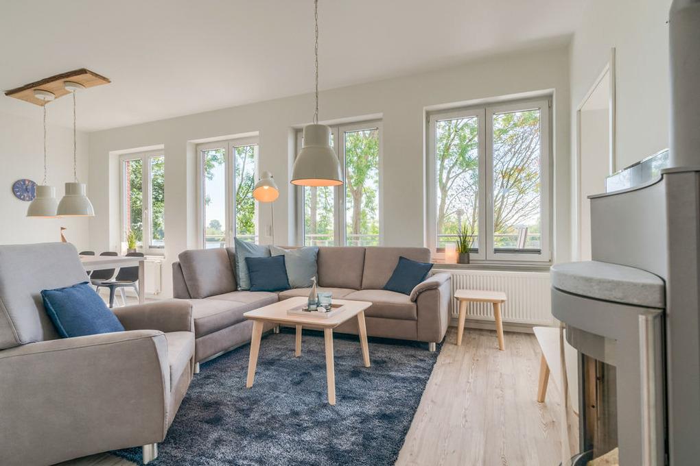 Auf dem bequemen Familiensofa können Sie dann den Tag mit Blick auf das knisternde Ofenfeuer ausklingen lassen. Egal, ob mit Buch in der Hand, bei guten Gesprächen oder vor dem Flat-TV, hier findet jeder seinen Lieblingsplatz.