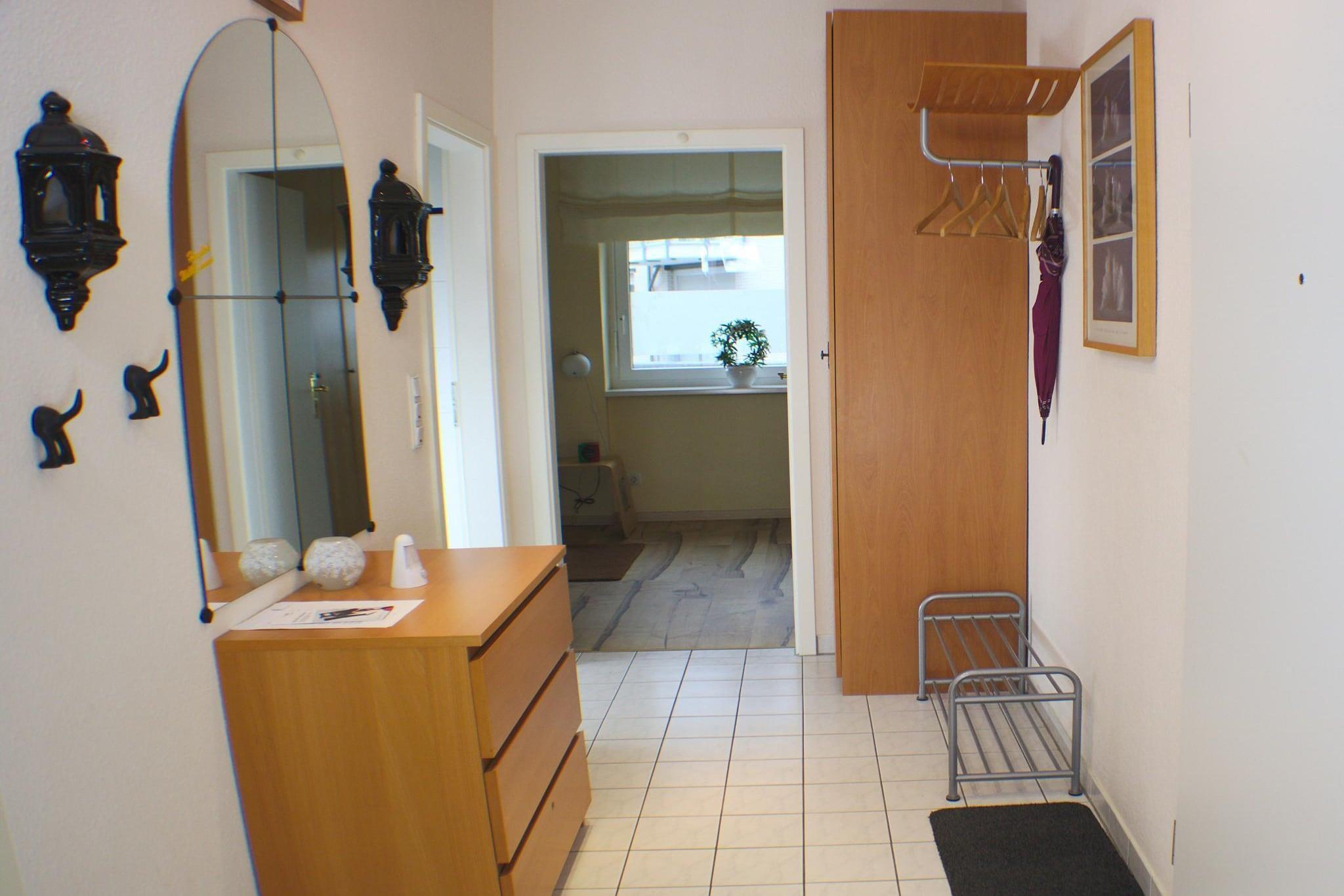 Denne moderne leiligheten i 1. etasje ligger kun 100 meter fra Østersjøen og sandstranden, og tilbyr en elegant og komfortabel base for par eller små familier. Det åpne kjøkkenet er fullt utstyrt med keramisk kokeplate, stekeovn, oppvaskmaskin, kjøleskap med fryser, blender og to helautomatiske kaffemaskiner - perfekt for rolige frokoster eller middager i solnedgangen. Stuen/spisestuen har en smart-TV, DVD-spiller, radio og en dobbel sovesofa (160 × 200 cm), mens soverommet har en king-size seng (180 × 200 cm) og en egen flatskjerm-TV. Badet har dusj, vaskemaskin, hårføner og alt du trenger for et avslappende opphold. Utenfor kan du nyte den overbygde terrassen med hagemøbler og parasoll, pluss sykkelbod og parkering på stedet. En barneseng, strykebrett og strykejern gir ekstra bekvemmelighet, mens klesvask og sengetøy er tilgjengelig mot en avgift. Med vannsport (500 m), innendørs svømming (100 m), restauranter, bakeri, supermarked og sykkelutleie innen 100 meter, er du perfekt plassert for å utforske Niendorfs livlige kystsjarm.