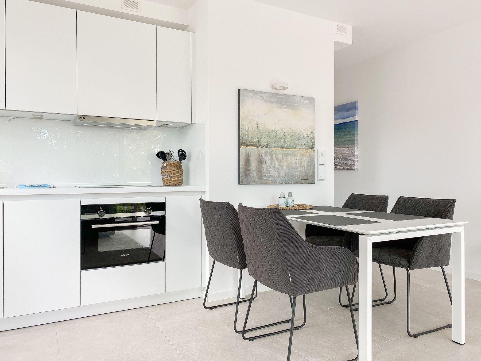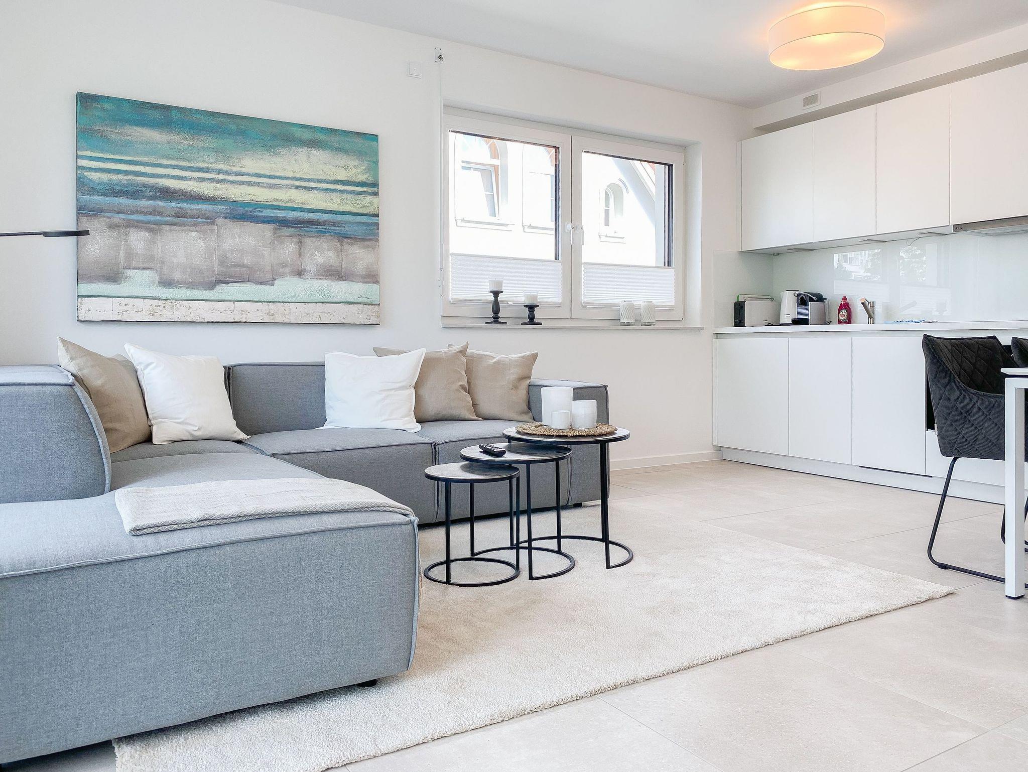 Zehn exklusive Wohnungen mit Balkonen und Terrassen zur Meerseite bieten traumhafte Ausblicke bis auf die Ostsee und jeglichen Komfort zur Gewährleistung eines hohen Wohnstandards in schönem Ambiente. Alle Wohnungen verfügen über moderne Bäder mit Walk In Duschen, Fußbodenheizung und elektrische Außenjalousien mit einstellbaren Lamellen, die gleichermaßen für Tageslicht und Privatsphäre sorgen.